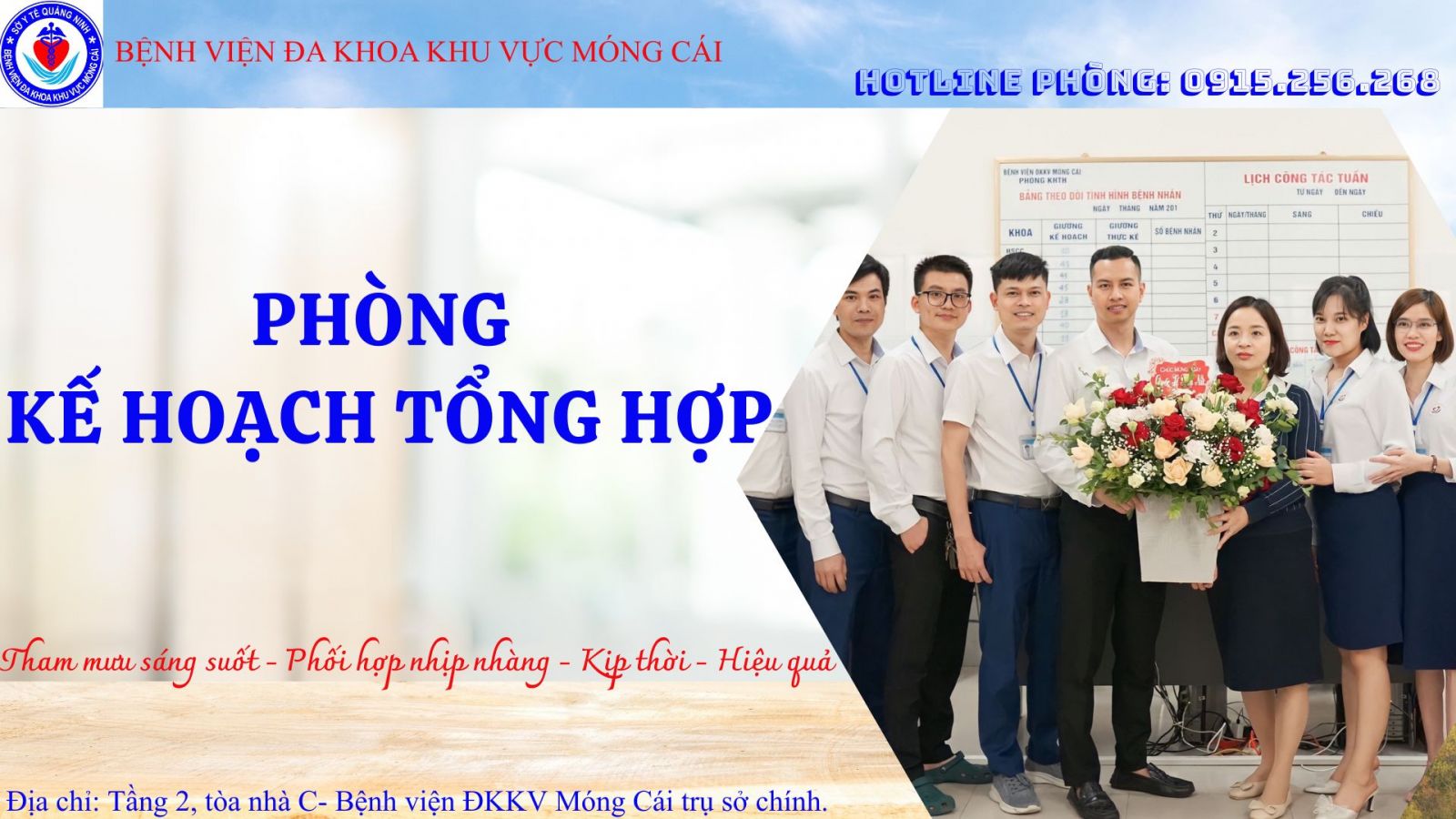 Lịch sử hình thành: Phòng Kế hoạch tổng hợp tiền thân là phòng Kế hoạch nghiệp vụ trực thuộc Trung tâm Y tế thành phố Móng Cái nay sau sáp nhập với Trung tâm Y tế huyện Hải Hà và Trung tâm Y tế huyện Đầm Hà thành Bệnh viện ĐKKV Móng Cái theo Quyết định số 3896/QĐ-UBND ngày 15 tháng 10 năm 2025 của Ủy ban nhân dân tỉnh về việc thành lập Bệnh viện Đa khoa khu vực Móng Cái trực thuộc Sở Y tế tỉnh Quảng Ninh. Là phòng nghiệp vụ chịu sự lãnh đạo trực tiếp của Giám đốc Bệnh viện ĐKKV Móng Cái.