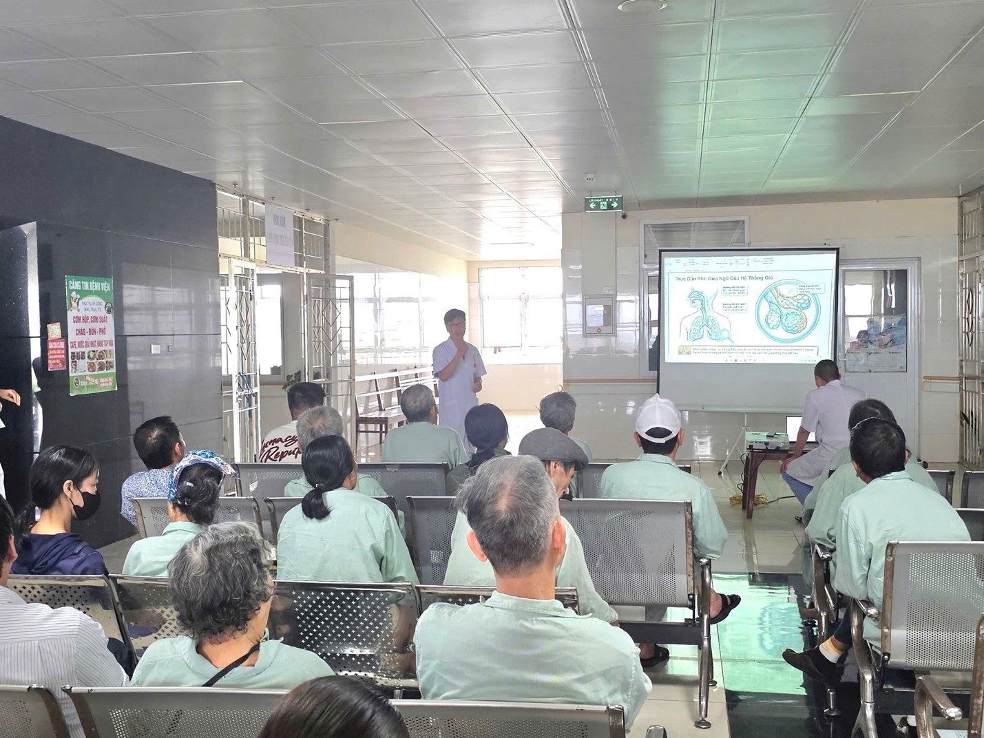 Bên cạnh đó, bệnh nhân được giải đáp đầy đủ về tuân thủ điều trị – yếu tố quan trọng giúp giảm triệu chứng và hạn chế đợt cấp. Hoạt động cũng khuyến khích trên 90% người bệnh tham gia phục hồi chức năng hô hấp với các bài tập đơn giản như thở hoành, thở mím môi, góp phần cải thiện chức năng phổi và nâng cao chất lượng cuộc sống.