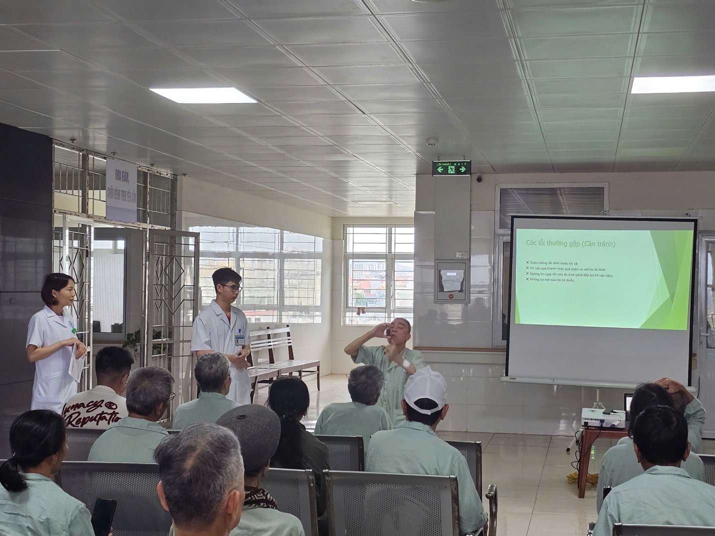 Bệnh nhân thực hành thao tác sử dụng thuốc đúng chuẩn