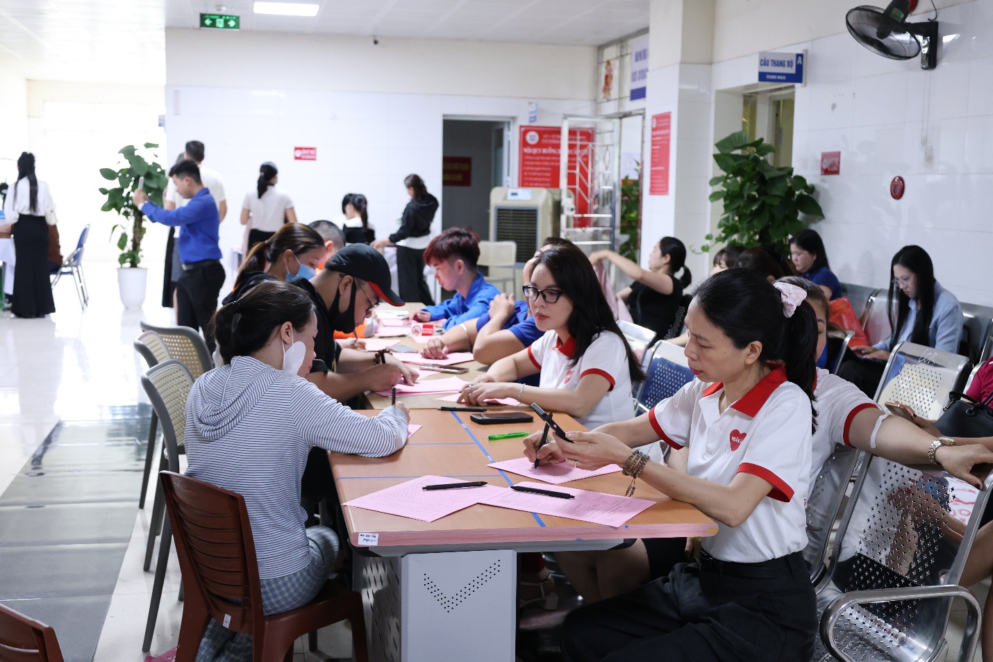 Ngay từ sáng sớm, khu vực tiếp nhận tại Khu Xét nghiệm – Cơ sở chính đã trở nên nhộn nhịp. Người dân đến đăng ký liên tục, xếp hàng trật tự, thể hiện tinh thần tự giác và ý thức vì cộng đồng. Các khâu từ đón tiếp, khám sàng lọc, tư vấn, đến lấy máu và chăm sóc sau hiến đều tuân thủ nghiêm ngặt quy trình y tế, đảm bảo an toàn tuyệt đối. Đội ngũ y bác sĩ, điều dưỡng và tình nguyện viên luôn túc trực, tận tình hỗ trợ, mang lại tâm lý thoải mái và an tâm nhất cho người tham gia.