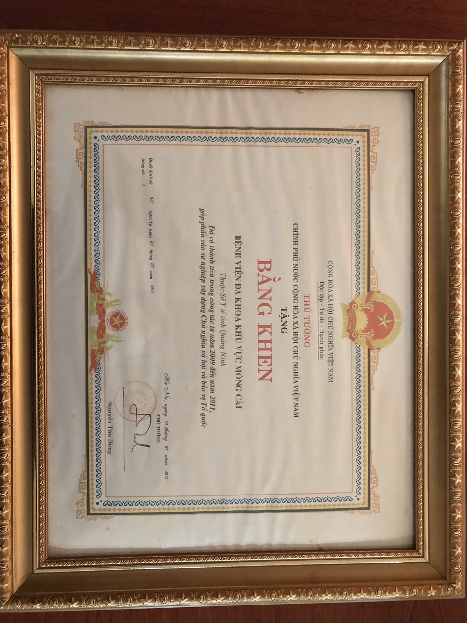 Năm 2012, được Thủ tướng chính phủ tặng bằng khen cho tập thể CBVC bệnh viện “Đã có nhiều thành tích trong công tác, góp phần vào sự nghiệp xây dựng chủ nghĩa xã hội và bảo vệ Tổ quốc ”.