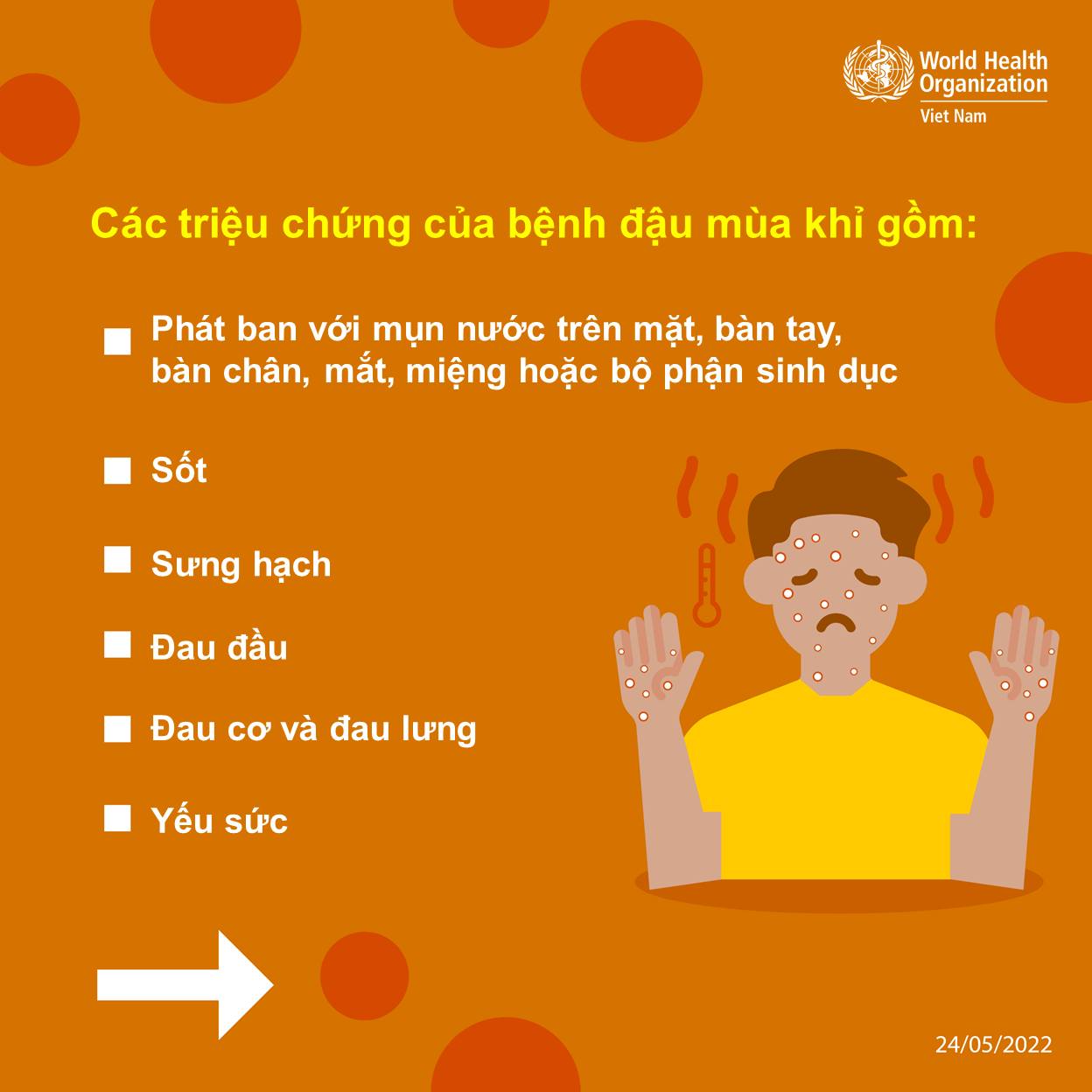 Tổ chức Y tế Thế giới (WHO) đã cập nhật tài liệu giải đáp những thông tin liên quan đến bệnh đậu mùa khỉ bao gồm triệu chứng, đường lây truyền và cách chữa trị qua Infographic sau: