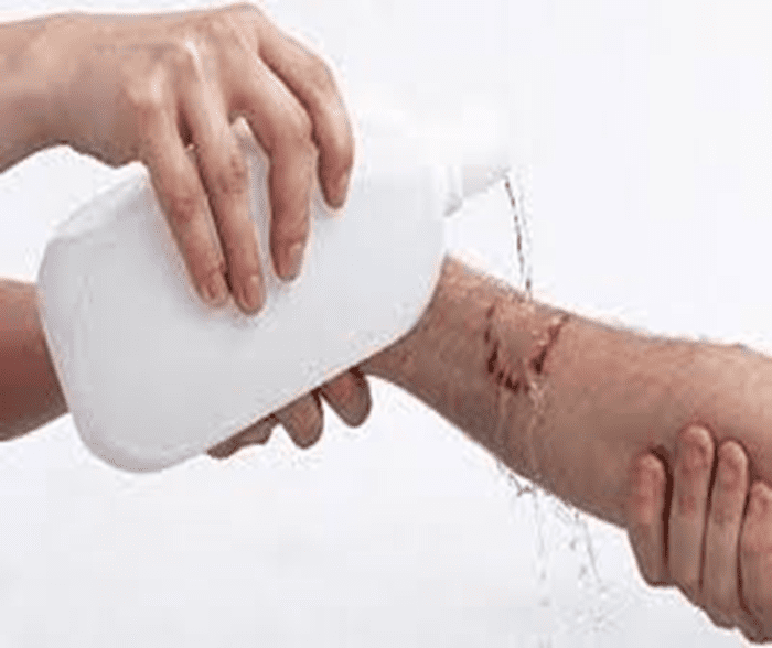 - Cần giữ bình tĩnh xử lý sơ cứu vết thương tại chổ đúng: Rửa kỹ vết thương bằng nước và xà phòng (dầu gội, bột giặt,...) đặc liên tục trong 15 phút, nếu không có xà phòng thì phải xối rửa vết thương bằng nước sạch. Sau đó tiếp tục rửa vết thương bằng cồn 70%, cồn iod hoặc Povidone, Iodine.