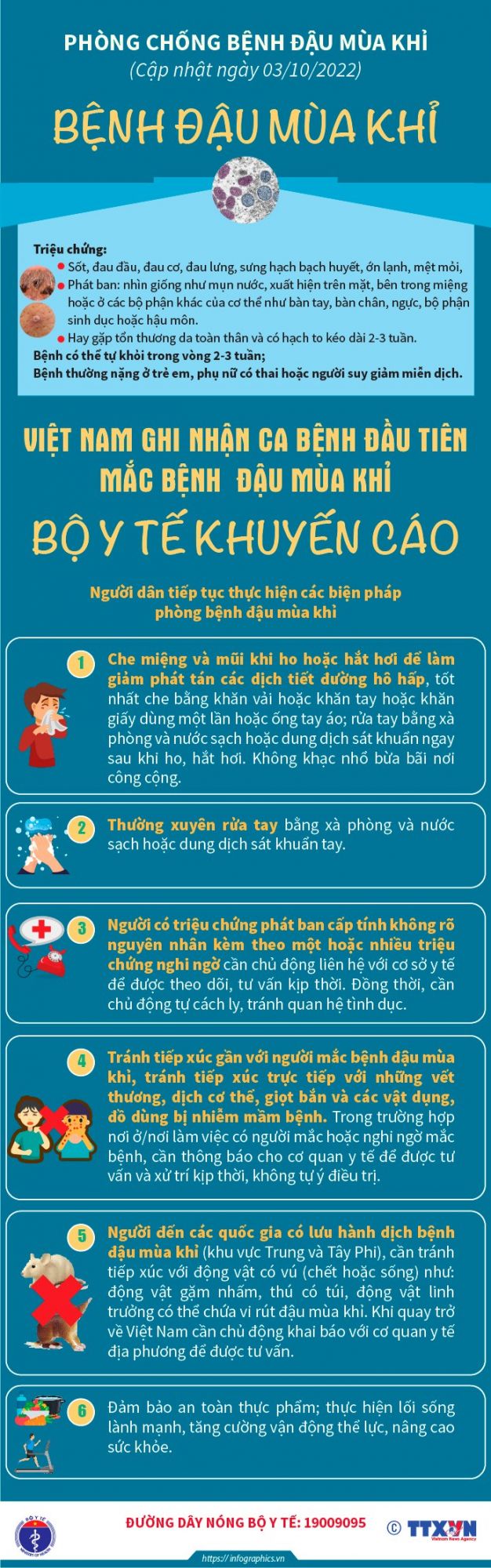 Infographic_Bộ Y tế đưa ra 6 khuyến cáo phòng, chống bệnh đậu mùa khỉ.
