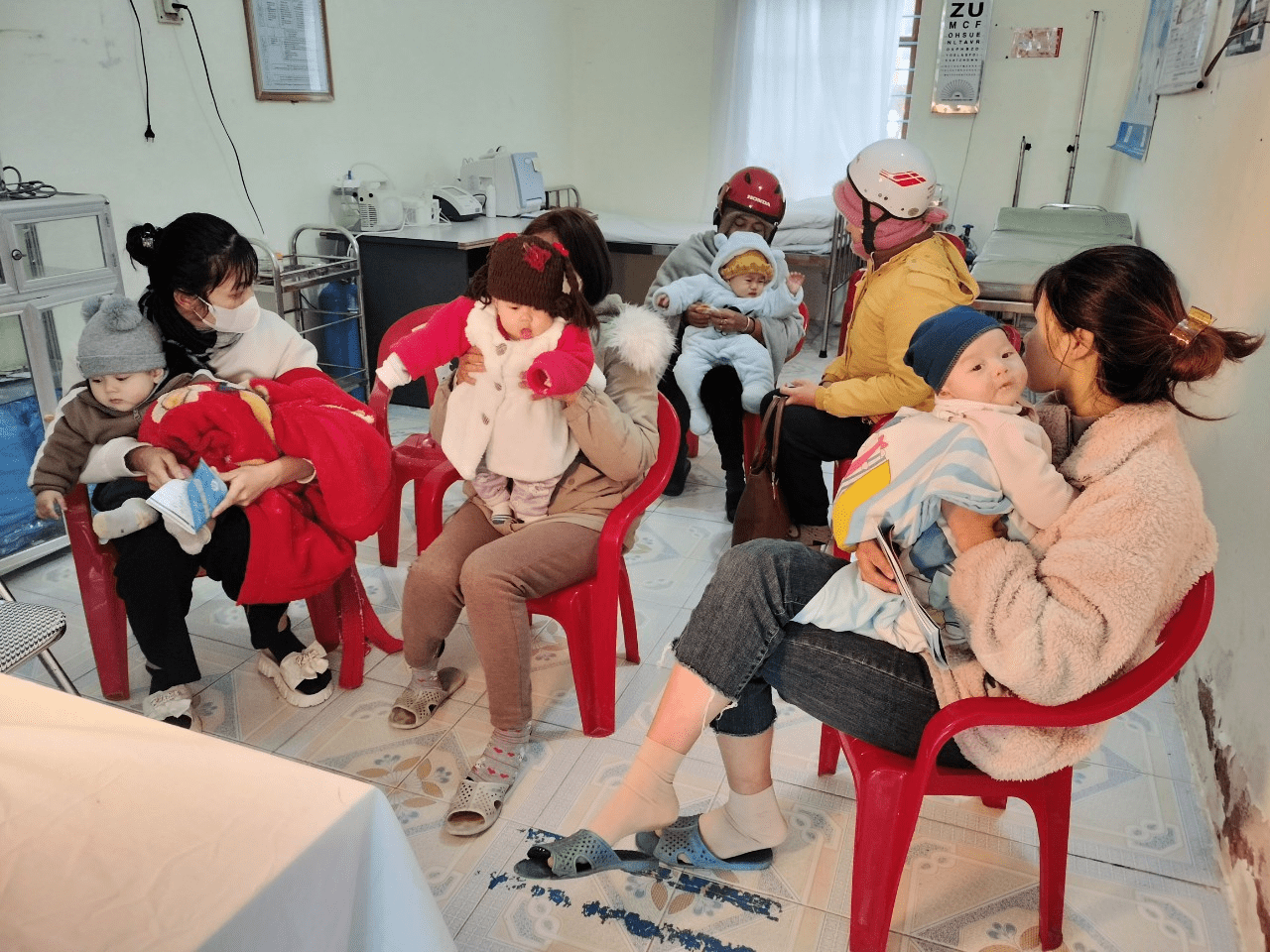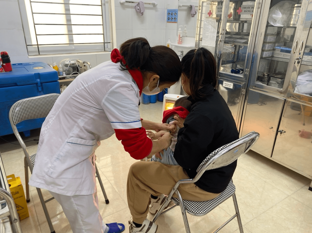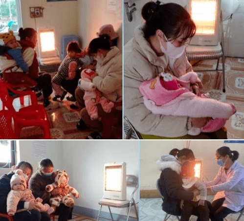 - Tại trạm y tế, các phòng chờ, phòng tư vấn, phòng tiêm và phòng theo dõi sau tiêm đều kín gió ấm áp. Chuẩn bị sẵn máy sưởi, quạt sưởi trong quá trình tổ chức tiêm chủng cho trẻ.