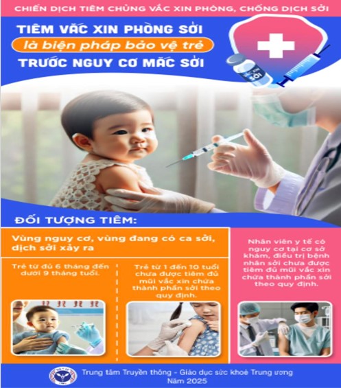1. Chủ động đưa trẻ từ 9 tháng đến 2 tuổi chưa tiêm hoặc tiêm chưa đủ 2 mũi vắc xin phòng bệnh Sởi đi tiêm đầy đủ, đúng lịch và các nhóm tuổi khác (6-9 tháng, 1-10 tuổi) tham gia chiến dịch tiêm vắc xin phòng, chống bệnh sởi theo hướng dẫn của Bộ Y tế.