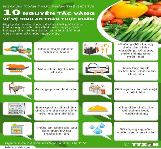 Mỗi người dân hãy là người tiêu dùng thông thái, là người nội trợ đảm đang để đảm bảo an toàn sức khỏe cho bản thân, gia đình và cộng đồng, cần thực hiện tốt 10 nguyên tắc vàng về vệ sinh thực phẩm: