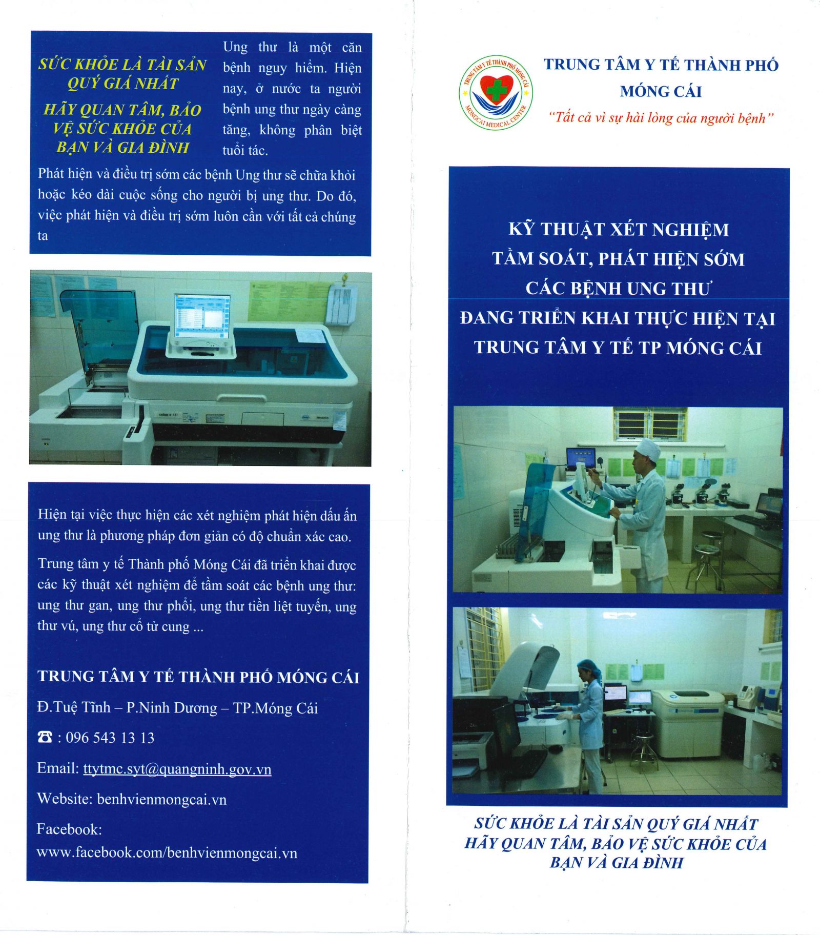 Thứ 2, 05/04/2021 | 16:03 A- A A+ | Kỹ thuật xét nghiệm tầm soát, phát hiện sớm các bệnh Ung thư - đang triển khai thực hiện tại Trung tâm Y tế TP Móng Cái Đọc bài Lưu Tổng số điểm của bài viết là: 0 trong 0 đánh giá Click để đánh giá bài viết