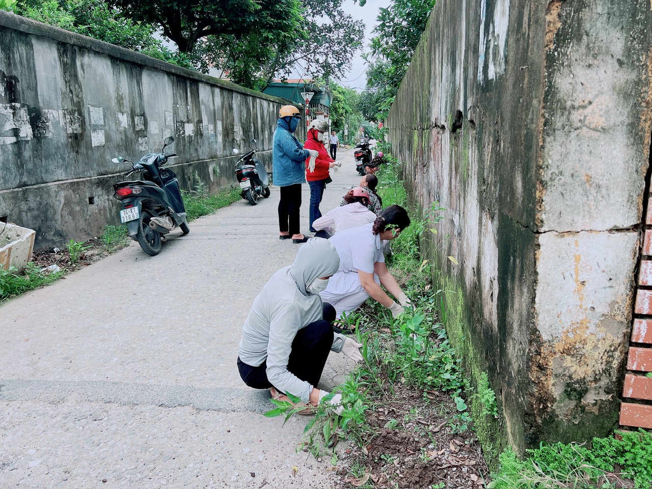 ( Hình ảnh: CTV tuyên truyền, hướng dẫn người dân xử lý, vệ sinh môi trường )