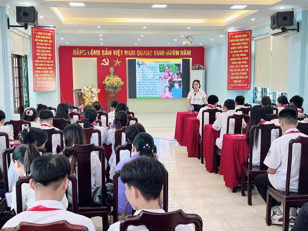 Chăm sóc sức khỏe sinh sản cho vị thành niên, thanh niên trong trường học là một hoạt động có ý nghĩa, giúp các em học sinh có sự hiểu biết và nhận thức rõ hơn về sức khoẻ sinh sản. Vừa qua, Trung tâm Y tế Y tế thành phố Móng Cái đã phối hợp với ngành giáo dục thành phố và chính quyền địa phương tổ chức các buổi truyền thông về chăm sóc sức khỏe sinh sản cho vị thành niên, thanh niên cho các em học sinh khối lớp 9 tại Trường trung học cơ sở trên địa bàn thành phố.
