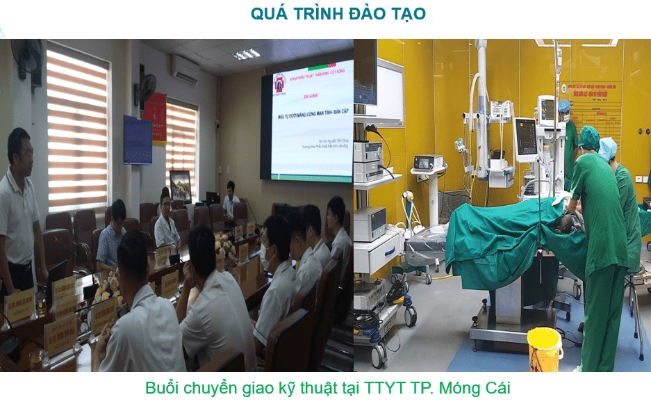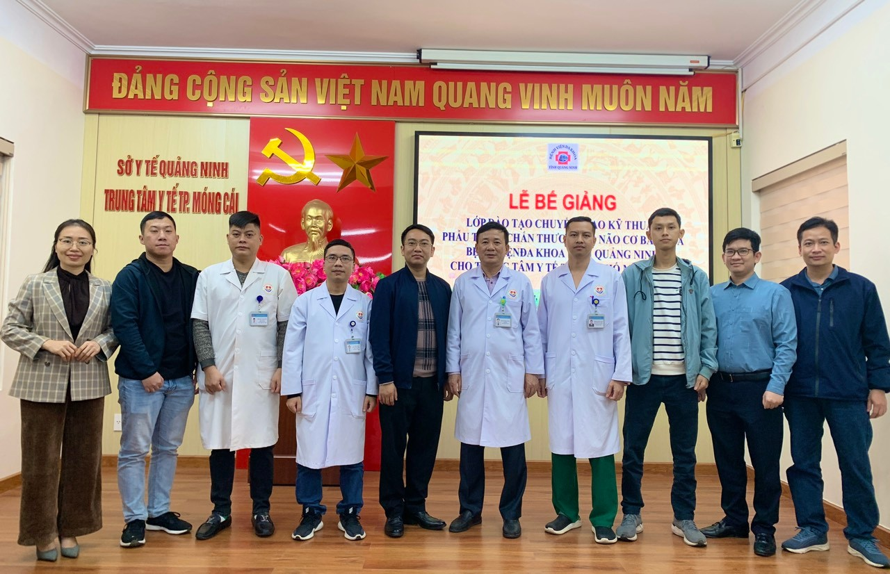 Trong quá trình đào tạo 6 tháng (3 tháng đào tạo tại Bệnh viện đa khoa tỉnh, 3 tháng chuyển giao trực tiếp tại Trung tâm y tế TP Móng Cái), các học viên được đội ngũ bác sĩ giỏi chuyên môn, giàu kinh nghiệm trong lĩnh vực Phẫu thuật Thần kinh - Cột sống của Bệnh viện đa khoa tỉnh trực tiếp giảng dạy các kiến thức lý thuyết tổng quan chung về bệnh lý chấn thương sọ não, đồng thời tổ chức thực hành chuyên môn tại khoa Phẫu thuật Thần kinh - Cột sống và chuyển giao kỹ thuật. Kết thúc khoa học, 100% học viên làm chủ về kỹ thuật phẫu thuật lún sọ, phẫu thuật vết thương sọ não, phẫu thuật máu tụ ngoài màng cứng đơn thuần, phẫu thuật dẫn lưu máu tụ dưới màng cứng mãn tính, phẫu thuật dẫn lưu não thất ra ngoài…