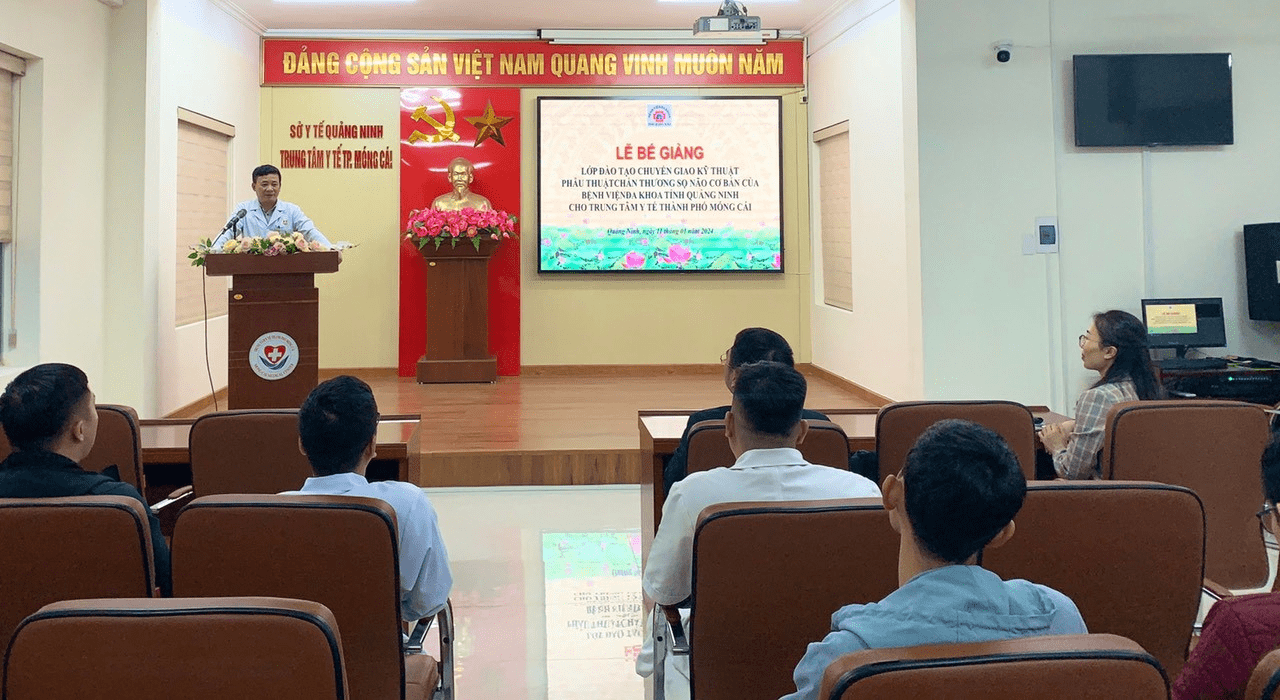 Ngày 11/01/2024, tại Trung tâm Y tế thành phố Móng Cái đã diễn ra Lễ bế giảng lớp đào tạo chuyển giao kỹ thuật “Phẫu thuật chấn thương sọ não cơ bản” của Bệnh viện đa khoa tỉnh Quảng Ninh cho Trung tâm Y tế thành phố Móng Cái.