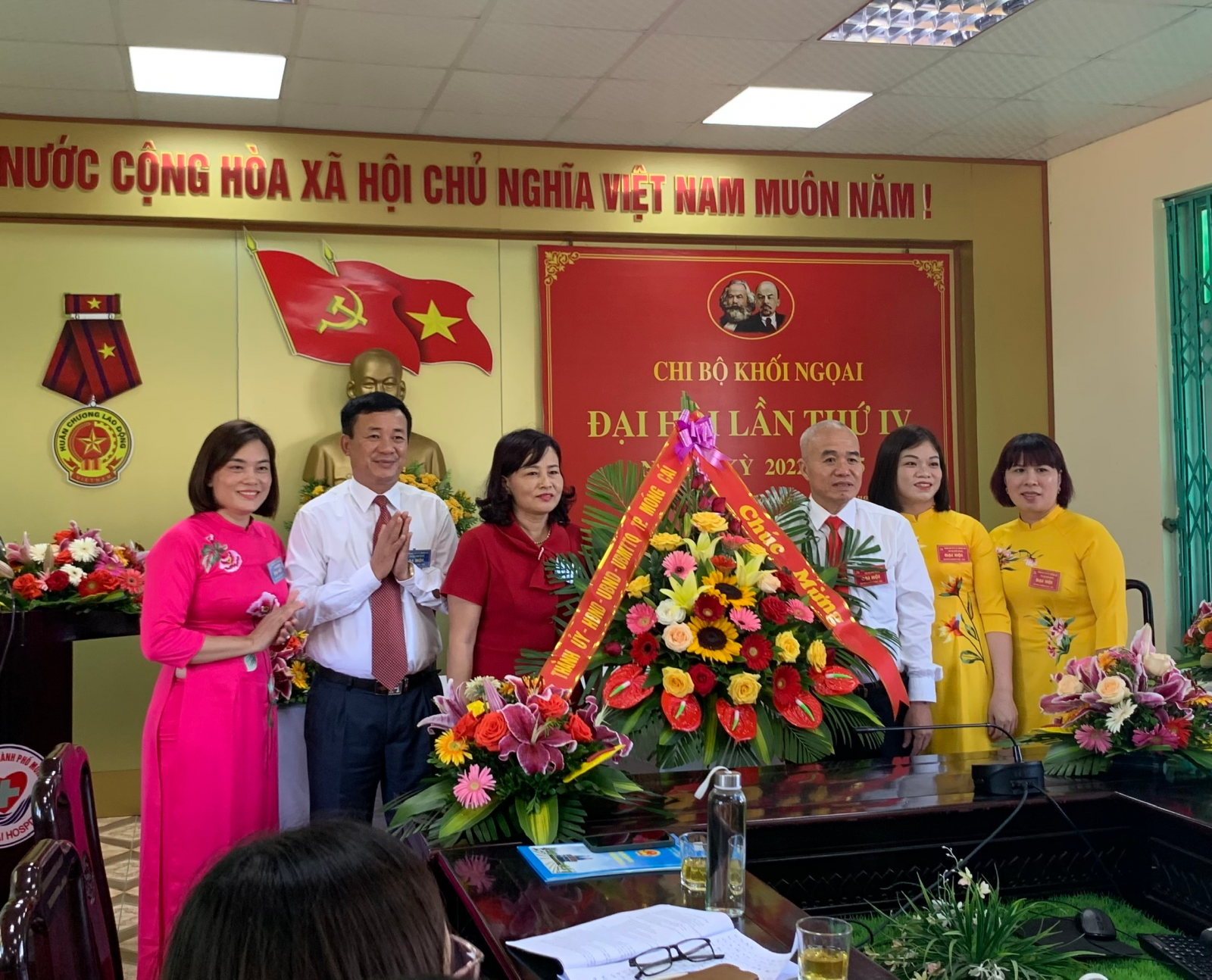 Phát biểu, tặng hoa chúc mừng Đại hội Chi bộ Khối Ngoại nhiệm kỳ 2022-2025, đồng chí Nguyễn Thu Hương - Ủy viên BCH Đảng bộ, Phó Chủ tịch UBND Thành phố, đã biểu dương những thành tích mà Chi ủy và cán bộ, đảng viên Chi bộ Khối Ngoại đạt được trong nhiệm kỳ qua, ghi nhận sự lãnh đạo, chỉ đạo và thành tích chung của toàn Đảng bộ Trung tâm y tế thành phố Móng Cái.