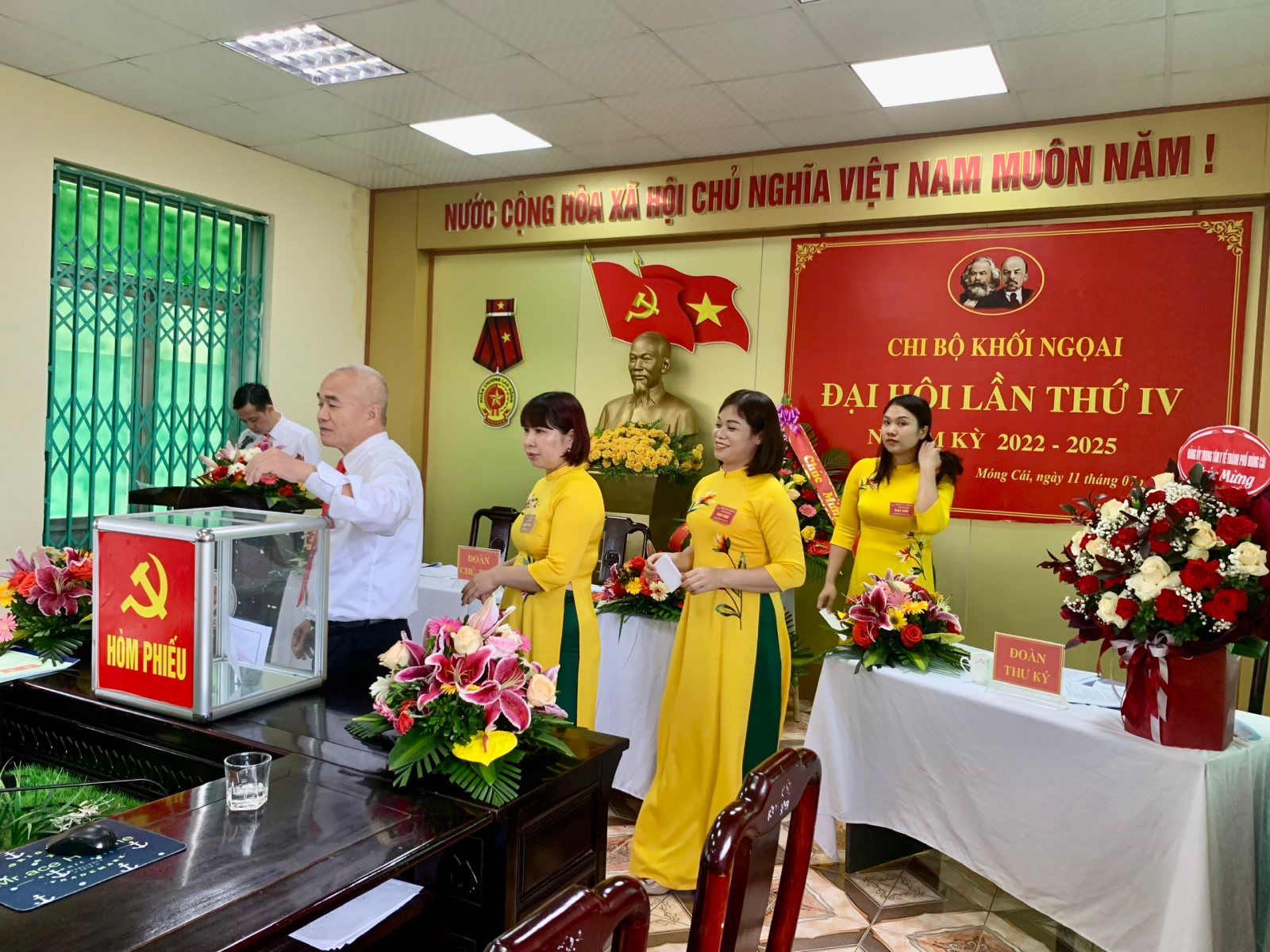 Với tinh thần đoàn kết, thống nhất, Đại hội đã biểu quyết thông qua Nghị quyết gồm các chỉ tiêu quan trọng và quyết tâm phấn đấu hoàn thành xuất sắc các nhiệm vụ đề ra, xây dựng chi bộ ngày càng vững mạnh. Đại hội đã bầu Chi ủy Chi bộ Khối Ngoại nhiệm kỳ 2022-2025 gồm 3 đồng chí. Đồng chí Vũ Thế Cầu được đại hội tín nhiệm bầu làm Bí thư chi bộ, đồng chí Phạm Thị Đào được bầu làm Phó Bí thư Chi bộ Khối Ngoại, nhiệm kỳ 2022- 2025.