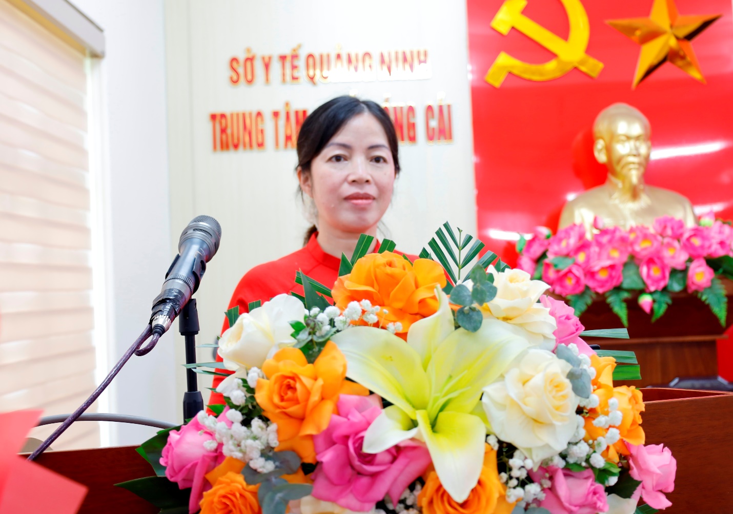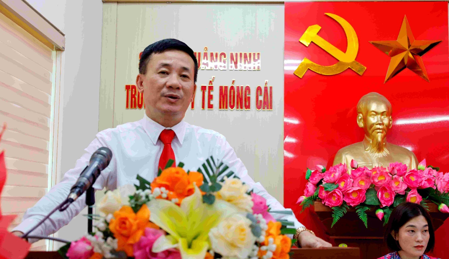 Đồng chí Thạc sỹ, bác sỹ Đoàn Ngọc Thủy, Bí thư Đảng ủy, Giám đốc Trung tâm y tế Móng Cái thông qua báo cáo chính trị.