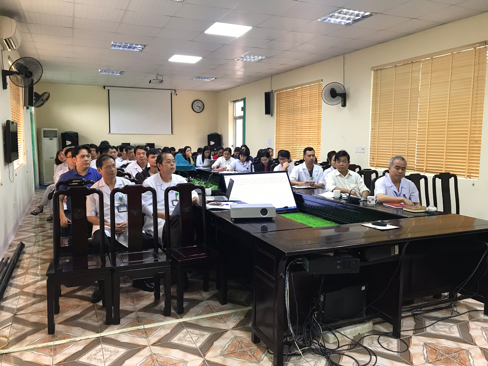 Tham dự hội nghị là toàn thể các đồng chí cán bộ, đảng viên trong toàn đảng bộ, lãnh đạo các khoa, phòng Trung tâm Y tế thành phố Móng Cái.
