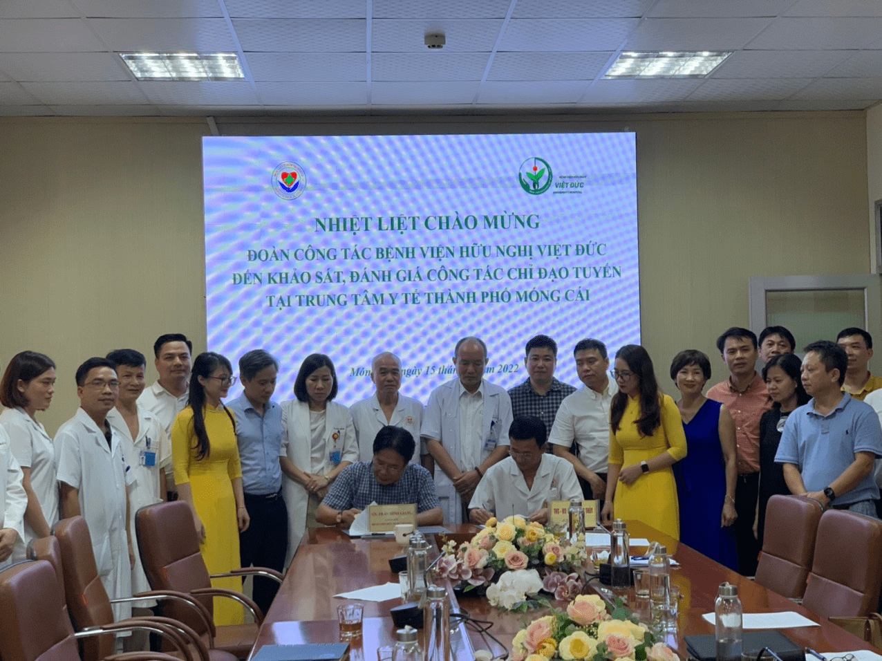 Giám đốc Bệnh viện Việt Đức và Giám đốc Trung tâm y tế thành phố Móng Cái cùng ký kết biên bản hỗ trợ, chuyển giao trong năm 2022