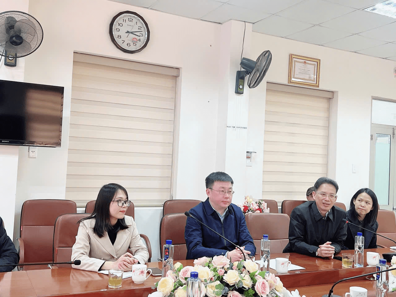 Ông Vương Bân Bân – Phó cục trưởng Cục kiểm soát và phòng ngừa dịch bệnh Quảng Tây (Trung Quốc) trao đổi tại buổi làm việc