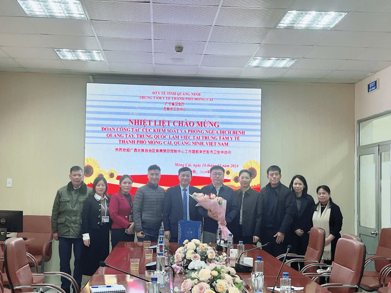 Trong chuyến thăm và làm việc với Ngành y tế Quảng Ninh, ngày 16/12/2024, tại TP Móng Cái, Đoàn công tác Cục kiểm soát và phòng ngừa dịch bệnh Quảng Tây (Trung Quốc) đã đến thăm và làm việc tại Trung tâm Y tế TP Móng Cái.