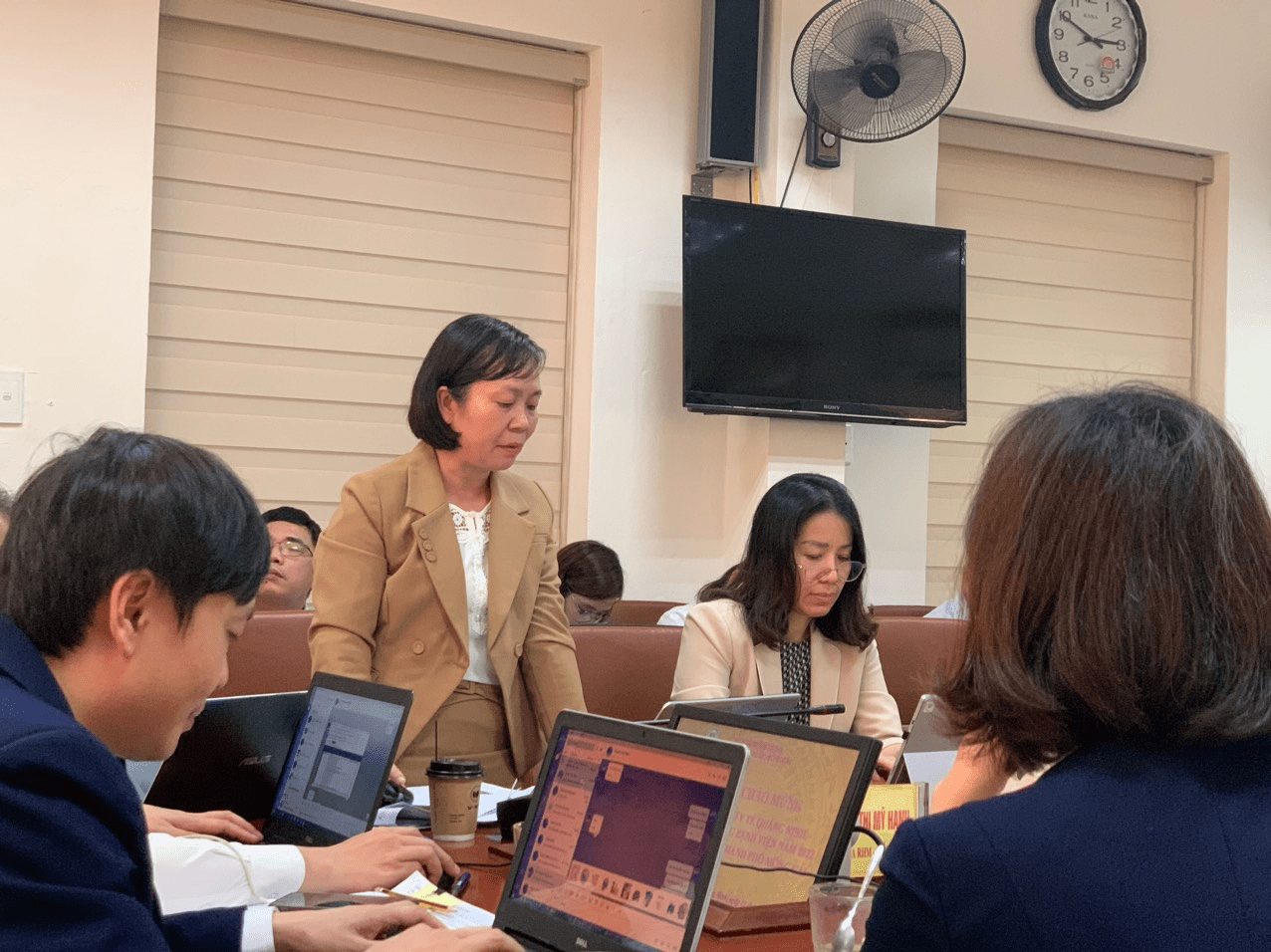 Thành viên đoàn công tác đánh giá hoạt động của Trung tâm theo các tiêu chí