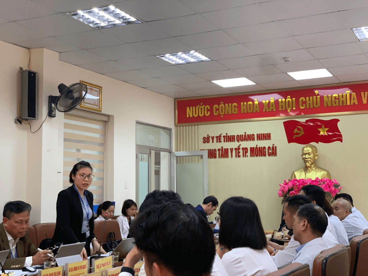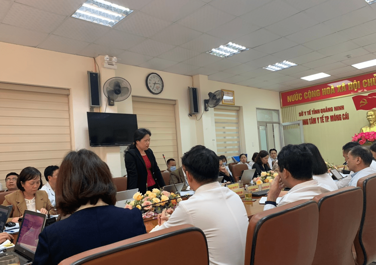 Ths.Bs Đoàn Ngọc Thủy, Giám đốc Trung tâm y tế TP Móng Cái phát biểu tại buổi làm việc