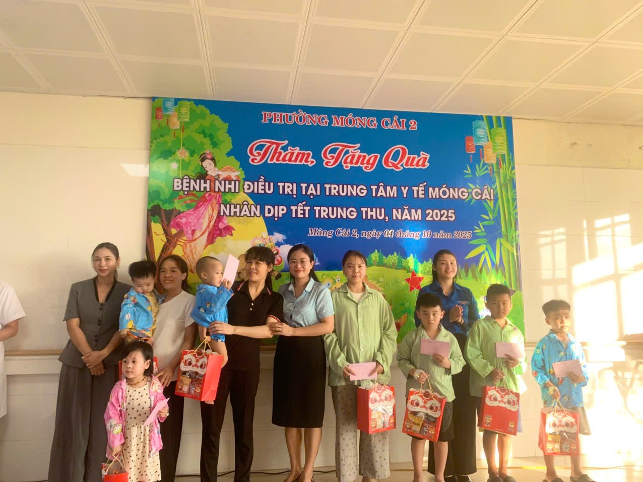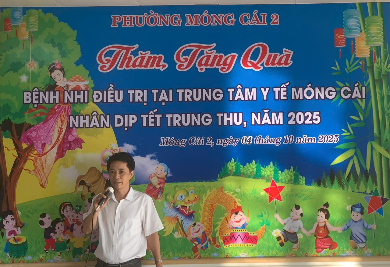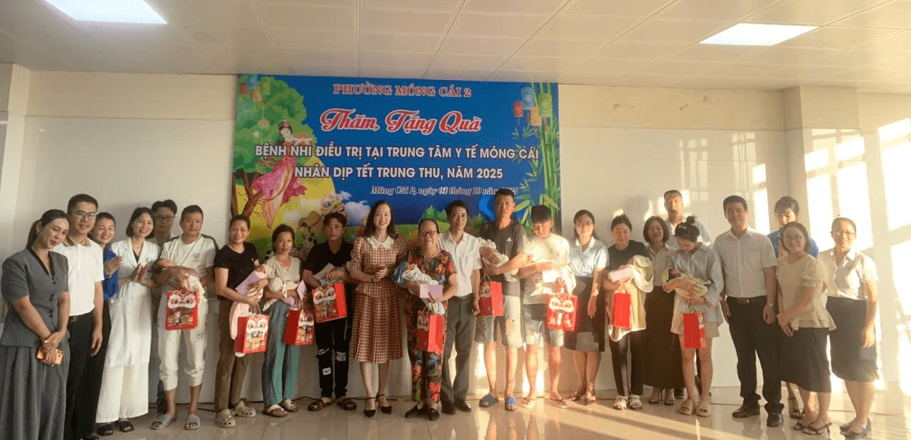 Nhân dịp Tết Trung thu 2025, chiều ngày 04/10/2025 (tức 13/8 Âm lịch), Đoàn công tác của Đảng ủy – HĐND – UBND – UBMTTQ và các đoàn thể phường Móng Cái 2 đã tổ chức thăm hỏi, tặng quà Tết Trung thu cho các em thiếu nhi đang điều trị tại Trung tâm Y tế thành phố Móng Cái.