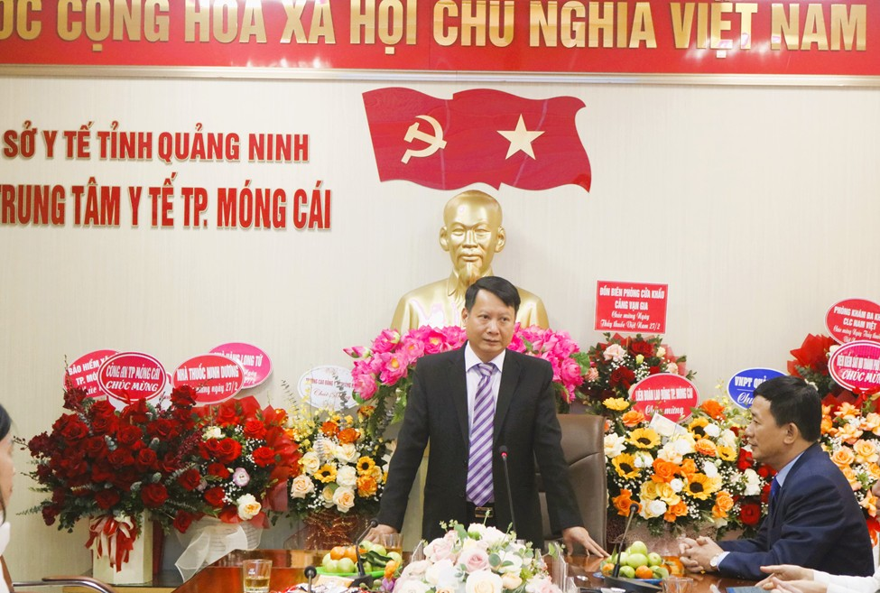 Đoàn Ngọc Thủy, Bí thư Đảng ủy, Giám đốc Trung tâm Y tế thành phố Móng Cái bày tỏ sự cảm ơn sâu sắc, sự vinh dự và hạnh phúc cán bộ, nhân viên y tế được đón đồng chí Chủ tịch Ủy ban nhân thành phố về thăm, chúc mừng, chỉ đạo và động viên để tập thể cán bộ, nhân viên, người lao động Trung tâm Y tế