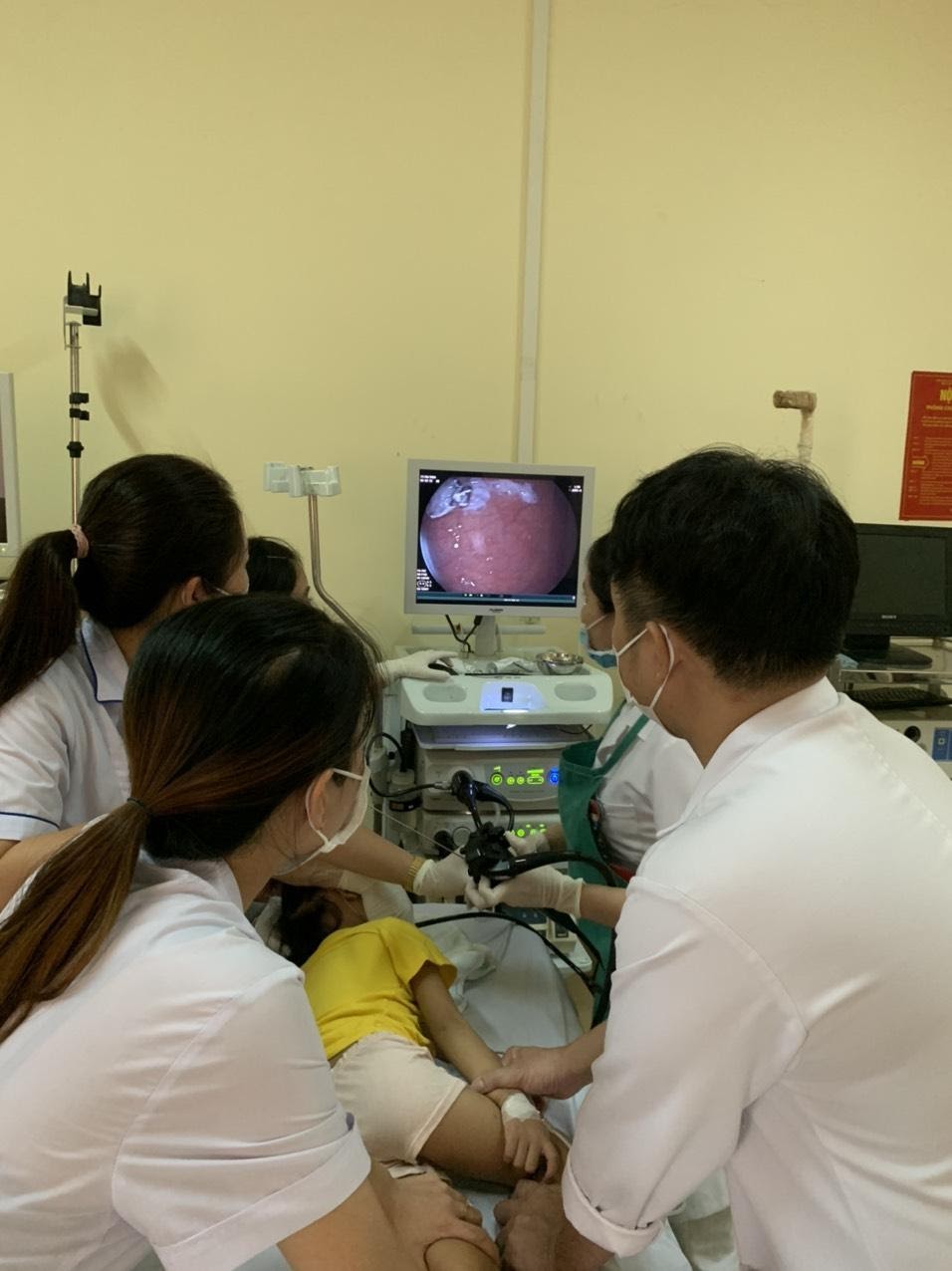 (Kíp thủ thuật tiến hành nội soi gắp dị vật cho bé)