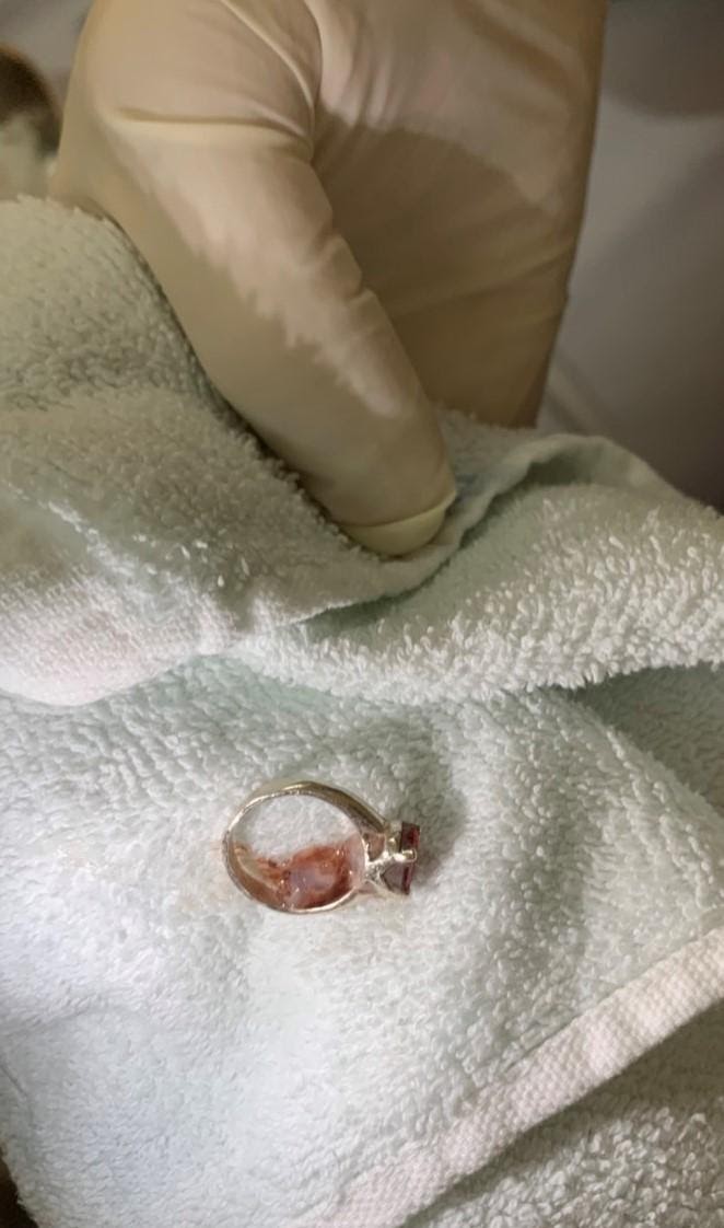 Với tính chất sắc nhọn của dị vật, nếu không loại bỏ kịp thời có thể gây tổn thương đâm thủng thành ruột, thậm chí có thể gây thủng nhiều vị trí mà dị vật đi qua. Các bác sĩ đã tiến hành dùng kìm gắp dị vật để gắp chiếc nhẫn ra ngoài, sau đó soi kiểm tra lại tình trạng thực quản dạ dày tá tràng ổn định, không còn dị vật nào khác.