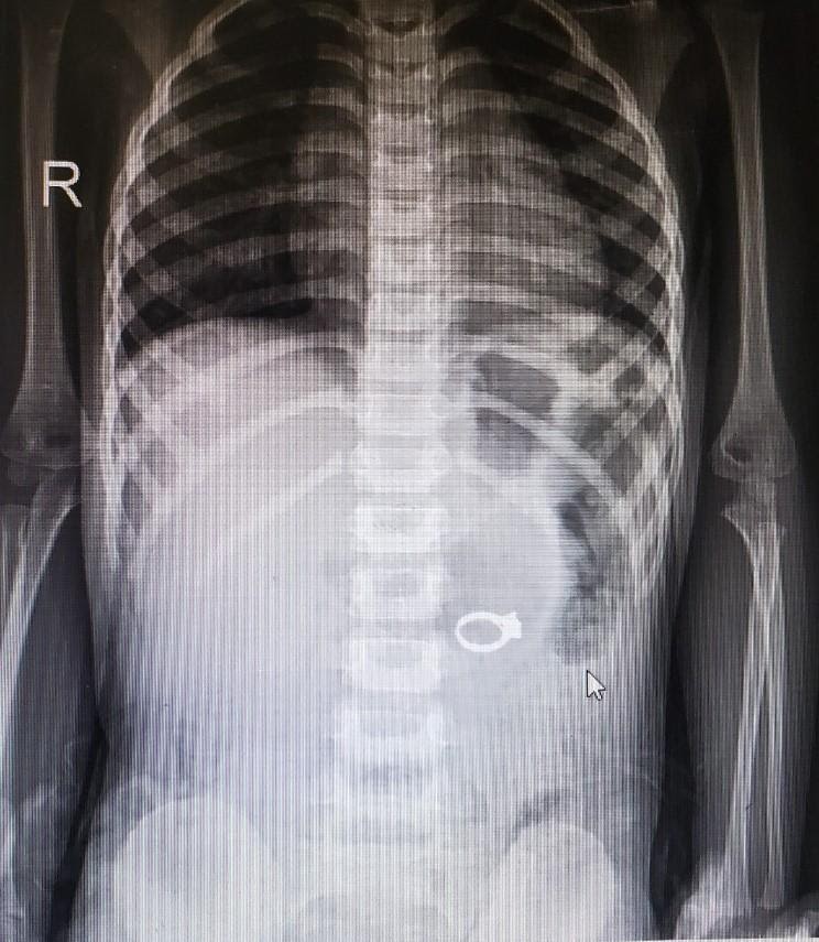 Ngày 17/9/2020, Trung tâm Y tế TP Móng Cái tiếp nhận bé N. N.Q (04 tuổi), thường trú tại Hải Đông, Móng Cái, Quảng Ninh. Bé vào viện trong tình trạng đau tức ngực, ho nhiều, sau khi nuốt phải một chiếc nhẫn.