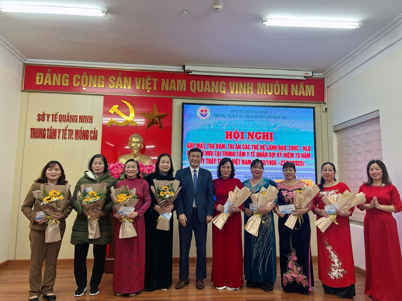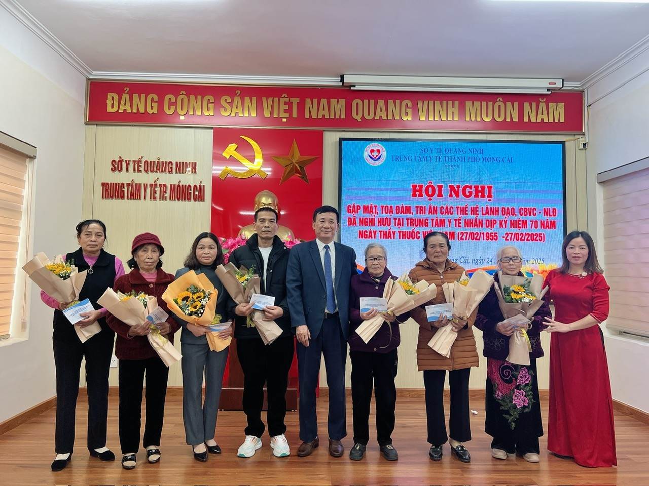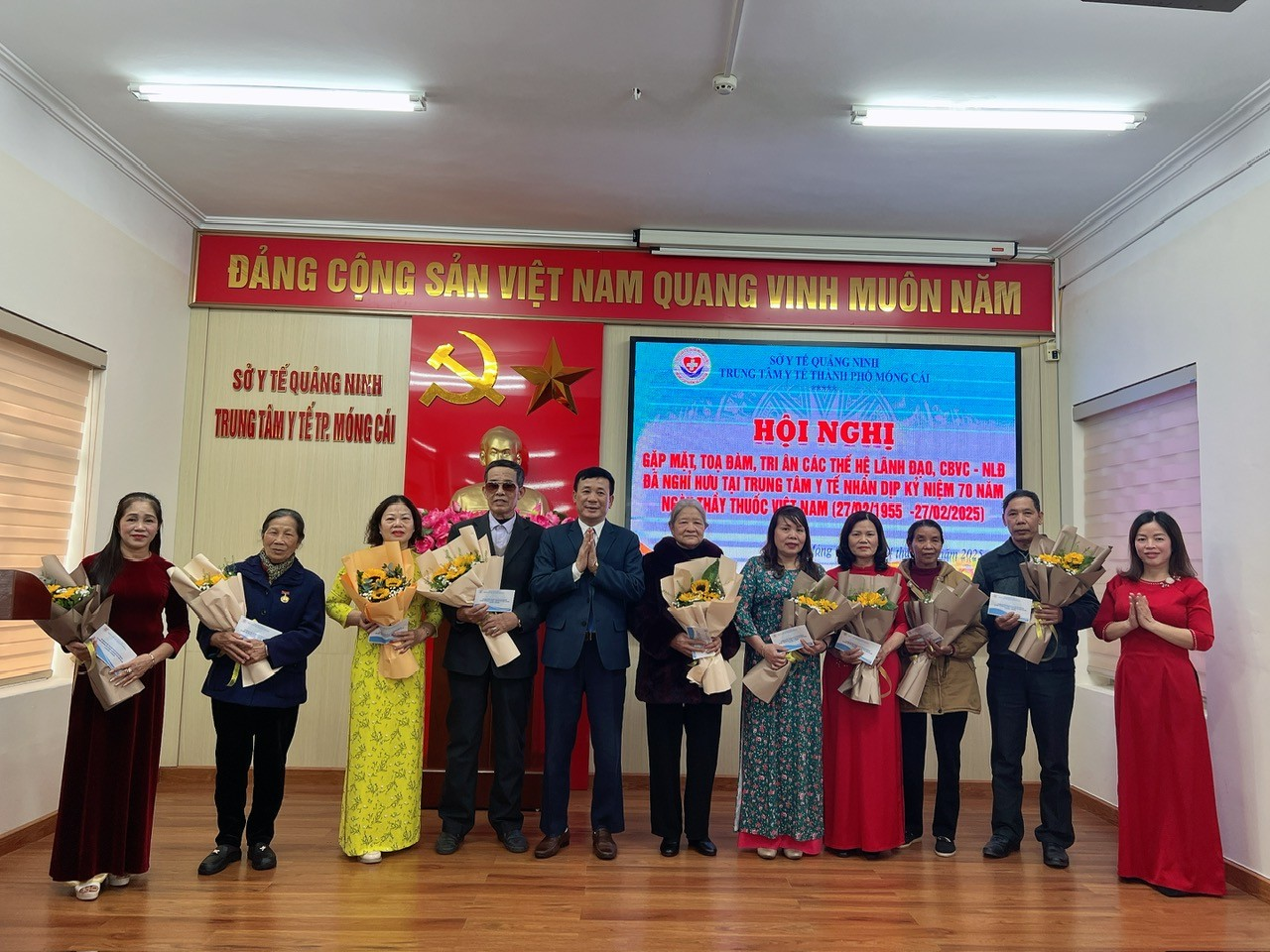 Nhân kỷ niệm 70 năm ngày Thầy thuốc Việt Nam (27/2/1955 – 27/2/2025), chiều ngày 24/2, Trung tâm Y tế thành phố Móng Cái đã long trọng tổ chức hội nghị gặp mặt, tọa đàm, tri ân các thế hệ lãnh đạo, CNVC-NLĐ đã nghỉ hưu tại Trung tâm qua các thời kì. Hoạt động này là một hoạt động truyền thống được tổ chức nhằm bày tỏ lòng trân trọng, tri ân những công lao, đóng góp của các thế hệ đi trước cho sự nghiệp xây dựng và phát triển đơn vị. Đây là một trong những hoạt động ý nghĩa hướng tới kỷ niệm 70 năm ngày Thầy thuốc Việt Nam.