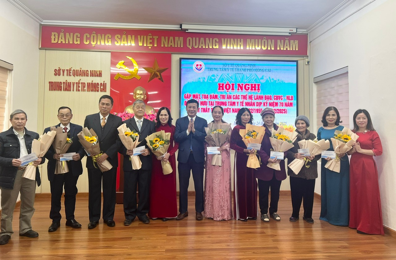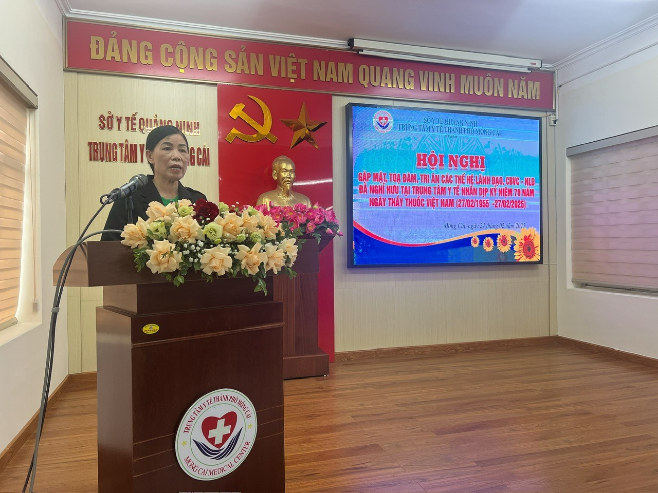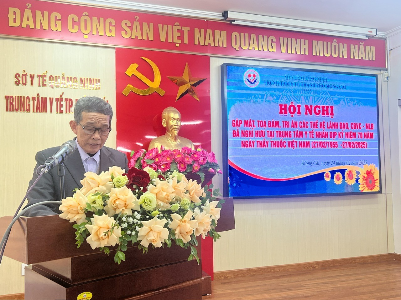 Nhân kỷ niệm 70 năm ngày Thầy thuốc Việt Nam (27/2/1955 – 27/2/2025), chiều ngày 24/2, Trung tâm Y tế thành phố Móng Cái đã long trọng tổ chức hội nghị gặp mặt, tọa đàm, tri ân các thế hệ lãnh đạo, CNVC-NLĐ đã nghỉ hưu tại Trung tâm qua các thời kì. Hoạt động này là một hoạt động truyền thống được tổ chức nhằm bày tỏ lòng trân trọng, tri ân những công lao, đóng góp của các thế hệ đi trước cho sự nghiệp xây dựng và phát triển đơn vị. Đây là một trong những hoạt động ý nghĩa hướng tới kỷ niệm 70 năm ngày Thầy thuốc Việt Nam.