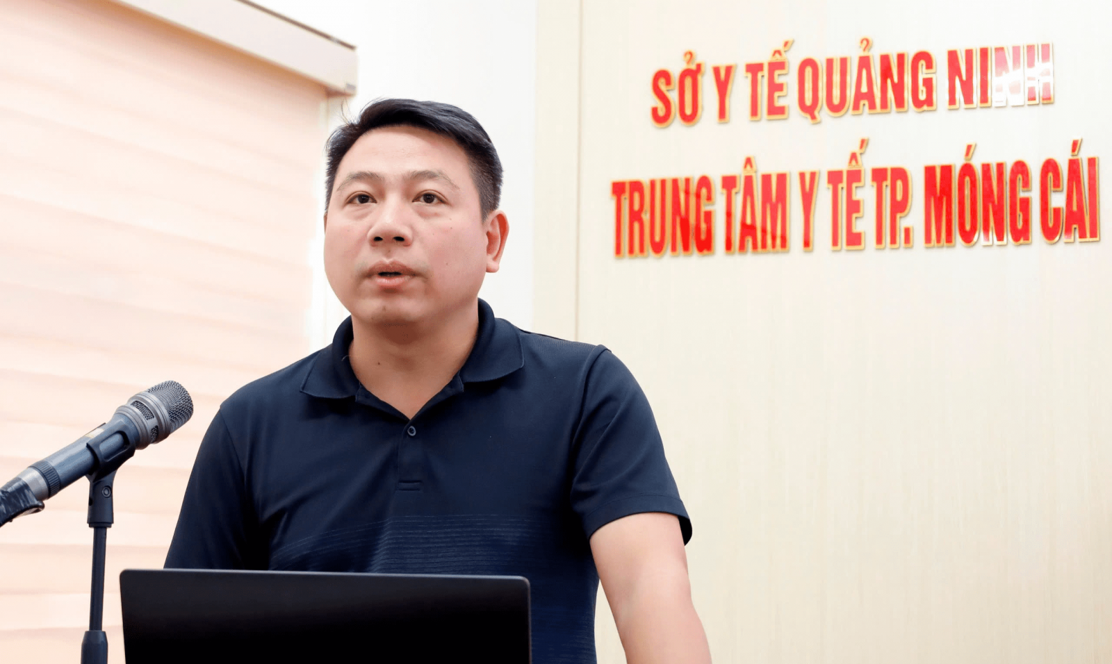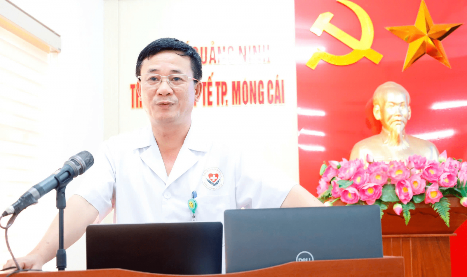 Thạc sỹ, Bác sỹ Đoàn Ngọc Thủy - Giám đốc Trung tâm y tế TP phát biểu tại hội nghị