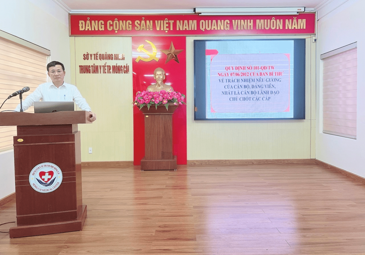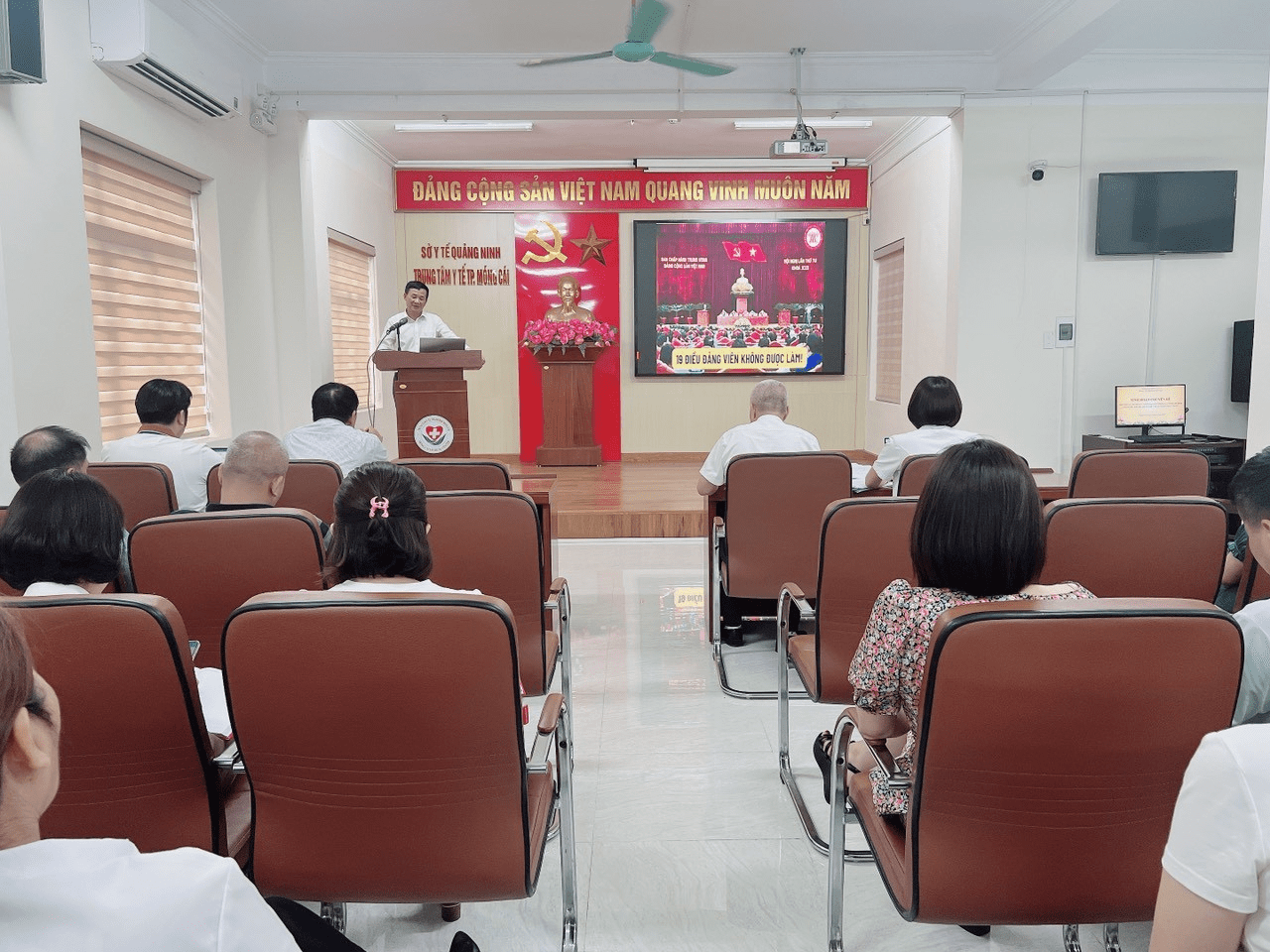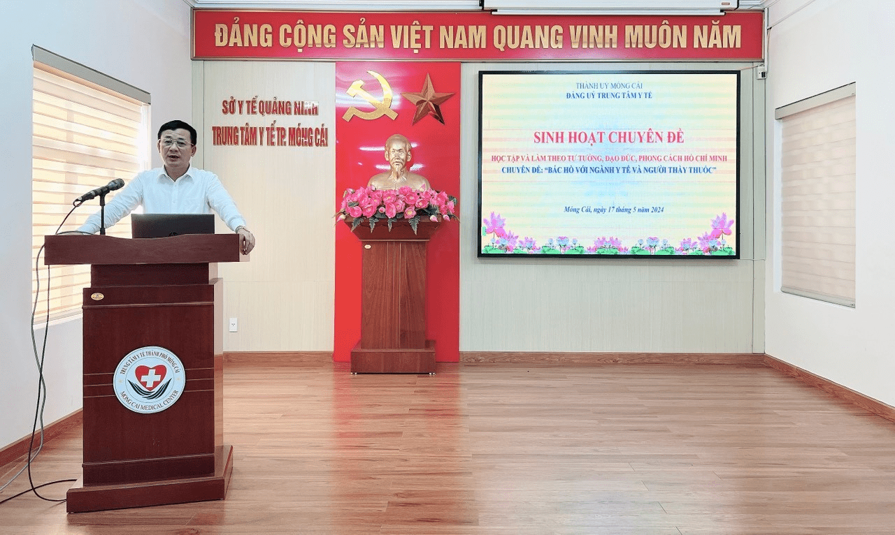 Nhân dịp kỷ niệm 134 năm ngày sinh Chủ tịch Hồ Chí Minh và thực hiện chương trình công tác năm. Ngày 17/5/2024, Đảng bộ Trung tâm y tế thành phố Móng Cái đã tổ chức hội nghị chuyên đề học tập và làm theo tư tưởng, đạo đức, phong cách Hồ Chí Minh: “Bác Hồ với ngành Y tế và người thầy thuốc”. Đồng chí Đoàn Ngọc Thuỷ, Bí thư đảng uỷ, Giám đốc Trung tâm trực tiếp truyền đạt chuyên đề.