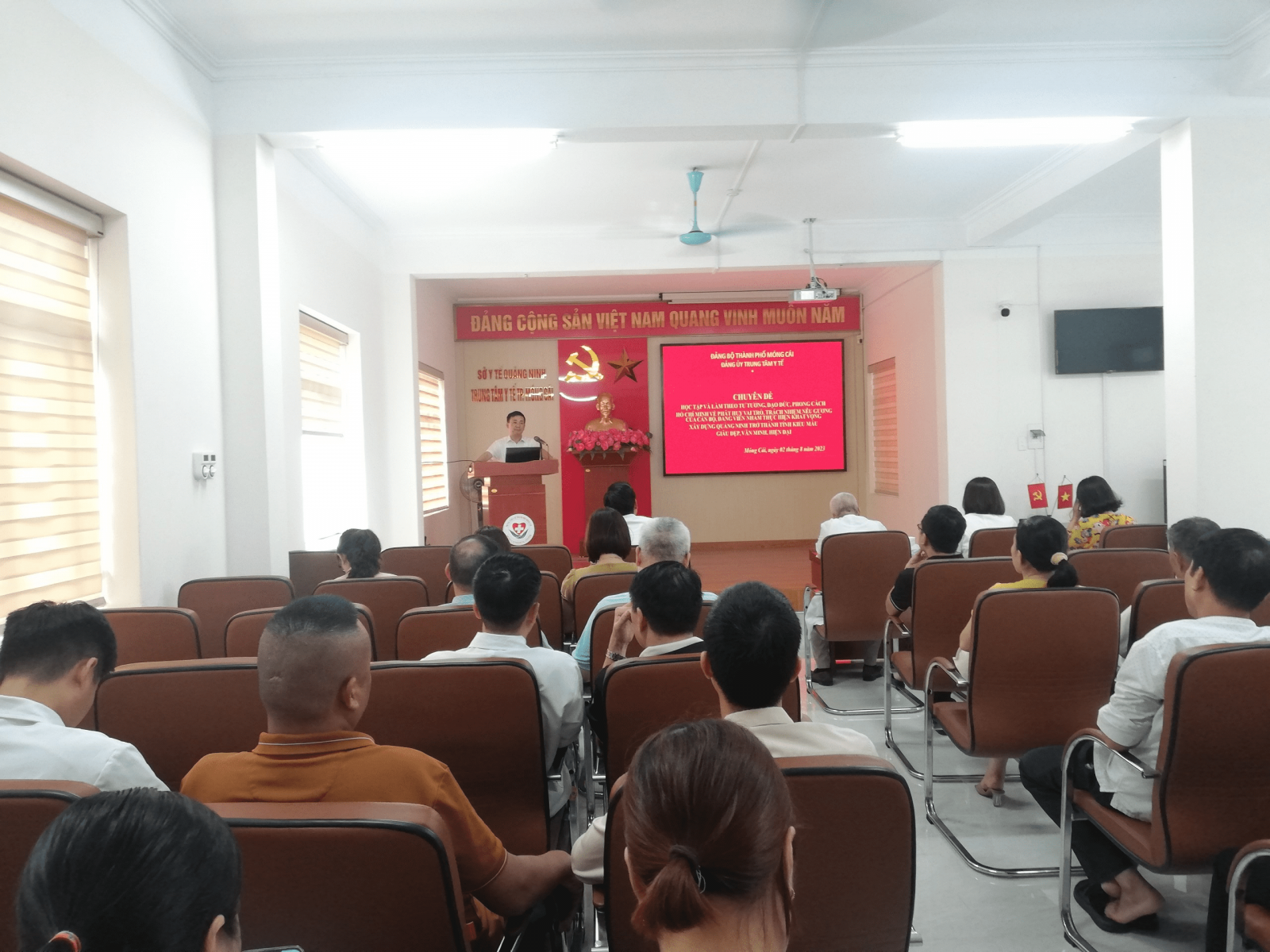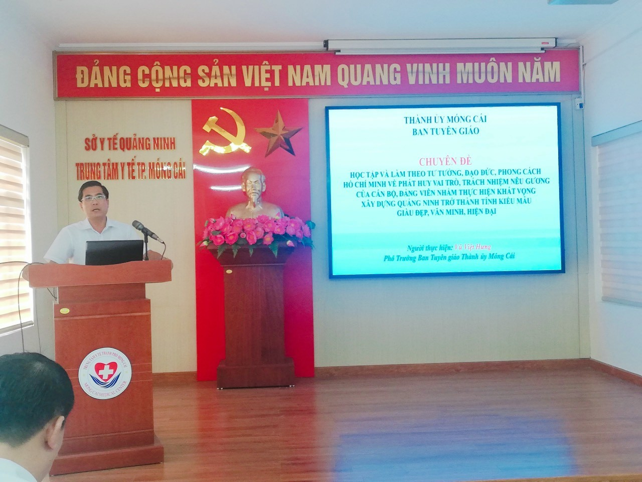 Ngày 2/8/2023, Đảng bộ Trung tâm y tế thành phố Móng Cái đã tổ chức hội nghị học tập, quán triệt chuyên đề năm 2023: “Học tập và làm theo tư tưởng, đạo đức, phong cách Hồ Chí Minh về phát huy vai trò, trách nhiệm nêu gương của cán bộ, đảng viên, công chức, viên chức nhằm thực hiện khát vọng xây dựng tỉnh Quảng Ninh trở thành tỉnh kiểu mẫu giàu đẹp, văn minh, hiện đại”. Đồng chí Vũ Việt Hưng, Phó Trưởng Ban Tuyên giáo Thành ủy Móng Cái trực tiếp truyền đạt chuyên đề.