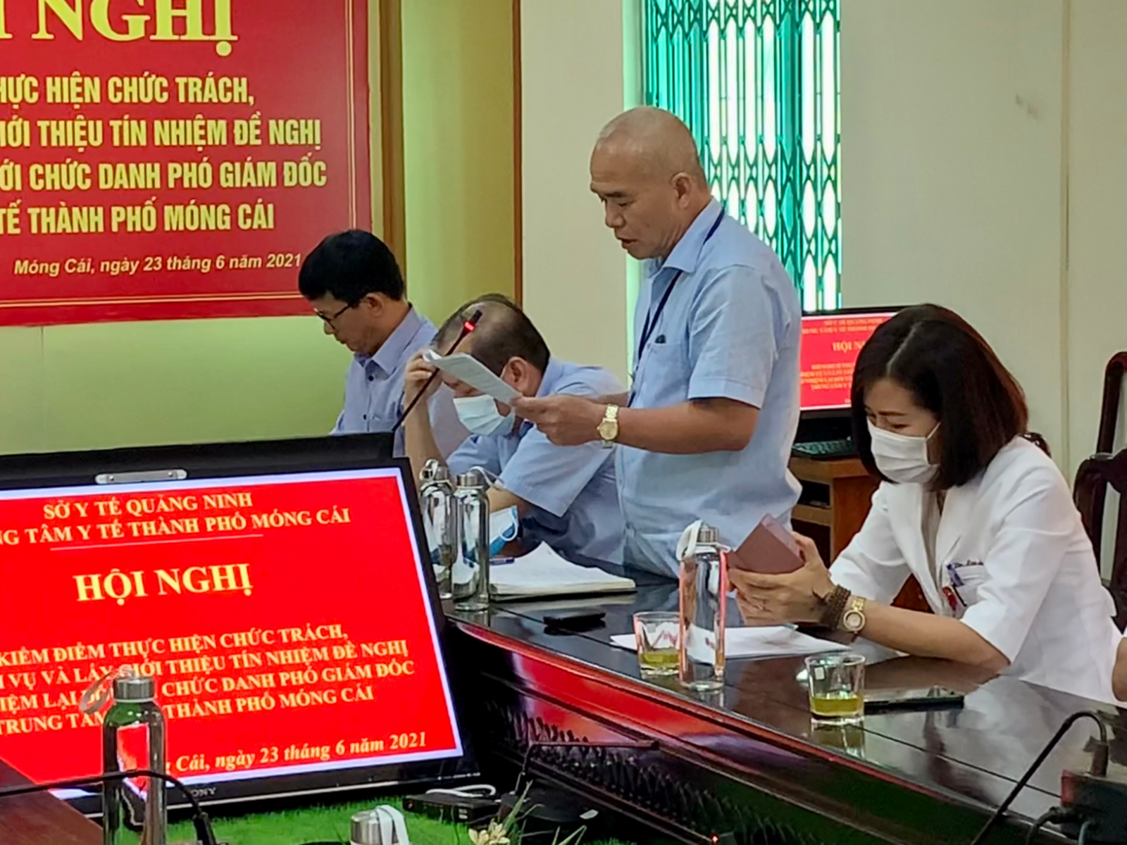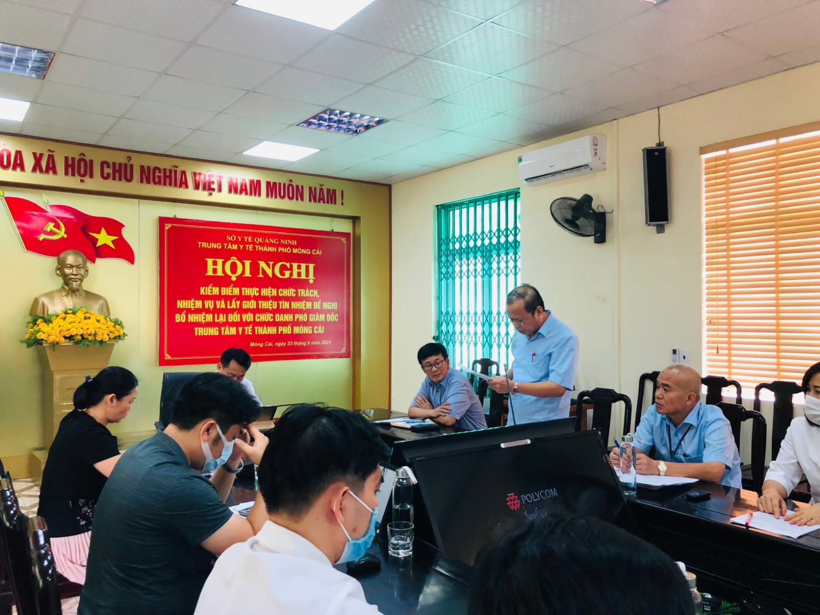 Ngày 23/6/2021, Trung tâm Y tế thành phố Móng Cái tổ chức Hội nghị kiểm điểm thực hiện chức trách nhiệm vụ và lấy giới thiệu tín nhiệm đề nghị bổ nhiệm lại đối với chức danh Phó Giám đốc Trung tâm Y tế thành phố Móng Cái. Đồng chí Nguyễn Mạnh Tuấn, Phó giám đốc Sở Y tế dự và chỉ đạo; đồng chí Đoàn Ngọc Thủy, Bí thư Đảng ủy, Giám đốc Trung tâm Y tế thành phố Móng Cái chủ trì Hội nghị.