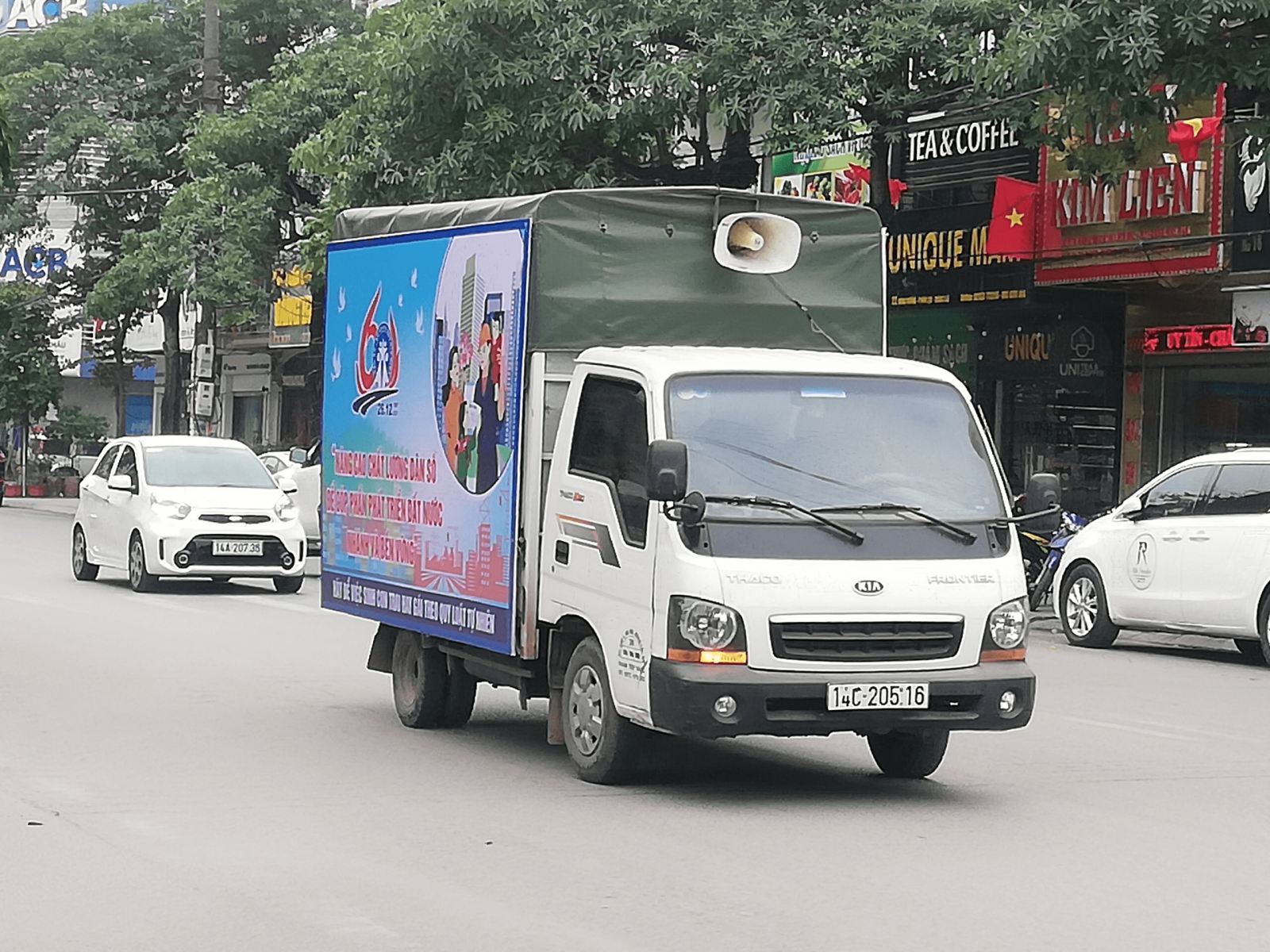 Xe tuyên truyền lưu động, truyền thông trên địa bàn Thành phố Móng Cái.