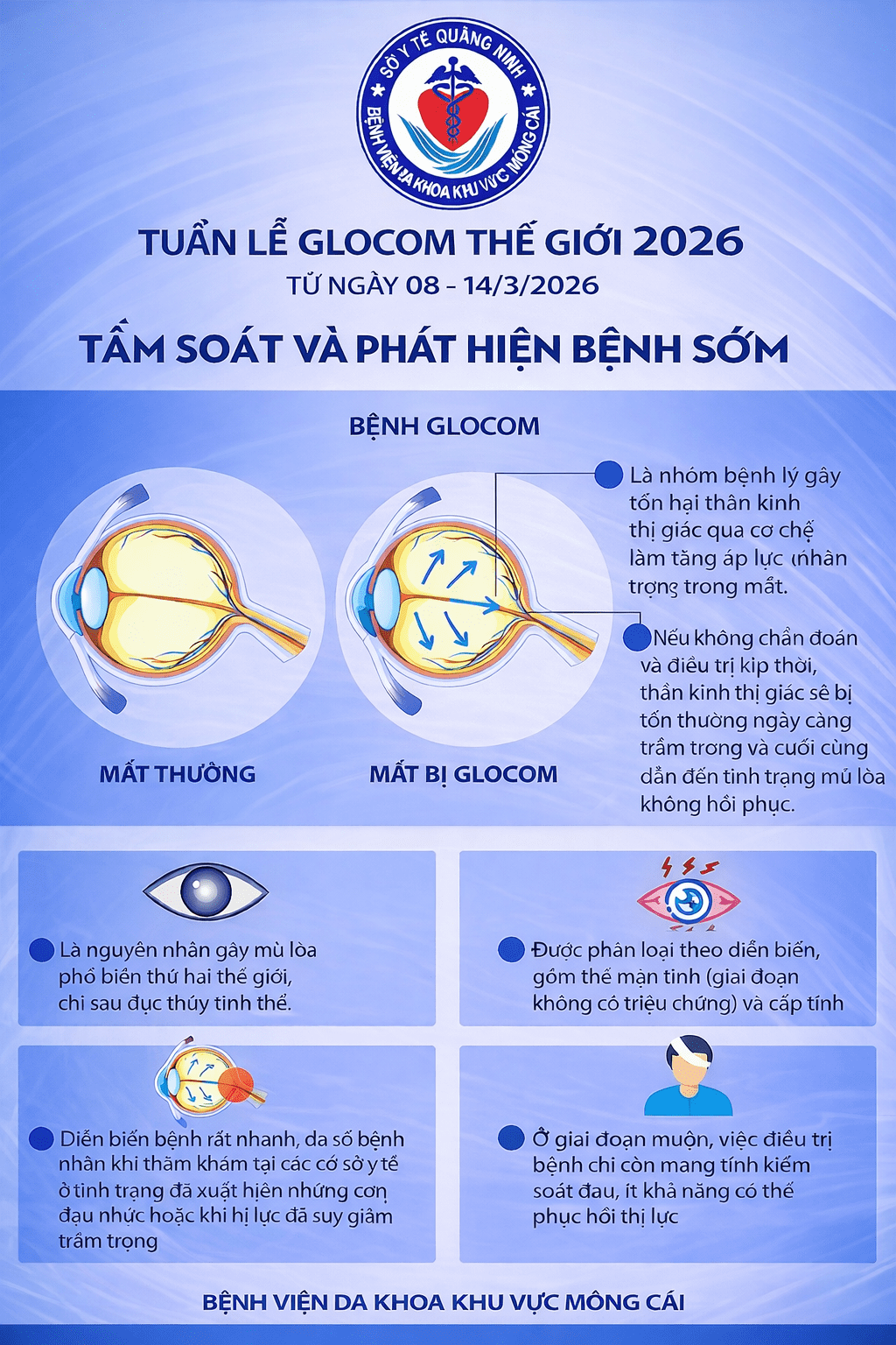 Tuần lễ Ngày Glôcôm Thế giới không chỉ là dịp để nâng cao nhận thức về một căn bệnh nguy hiểm mà còn là lời nhắc nhở mỗi người hãy quan tâm hơn đến sức khỏe đôi mắt – “cửa sổ tâm hồn” của chính mình. Bệnh viện Đa khoa khu vực Móng Cái sẽ tiếp tục duy trì và đẩy mạnh các hoạt động truyền thông, khám sàng lọc nhằm góp phần bảo vệ thị lực, nâng cao chất lượng cuộc sống cho người dân trên địa bàn.
