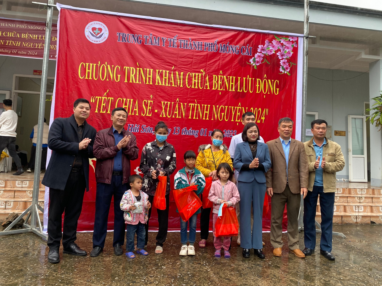 Tới dự chương trình có đồng chí Dương Thị Huệ, Phó Chủ tịch Hội đồng nhân dân thành phố Móng Cái, đồng chí Đoàn Ngọc Thủy, Giám đốc Trung tâm y tế thành phố Móng Cái, đồng chí Vũ Tuấn Anh, Bí thư đảng ủy, Chủ tịch UBND xã Hải Sơn.