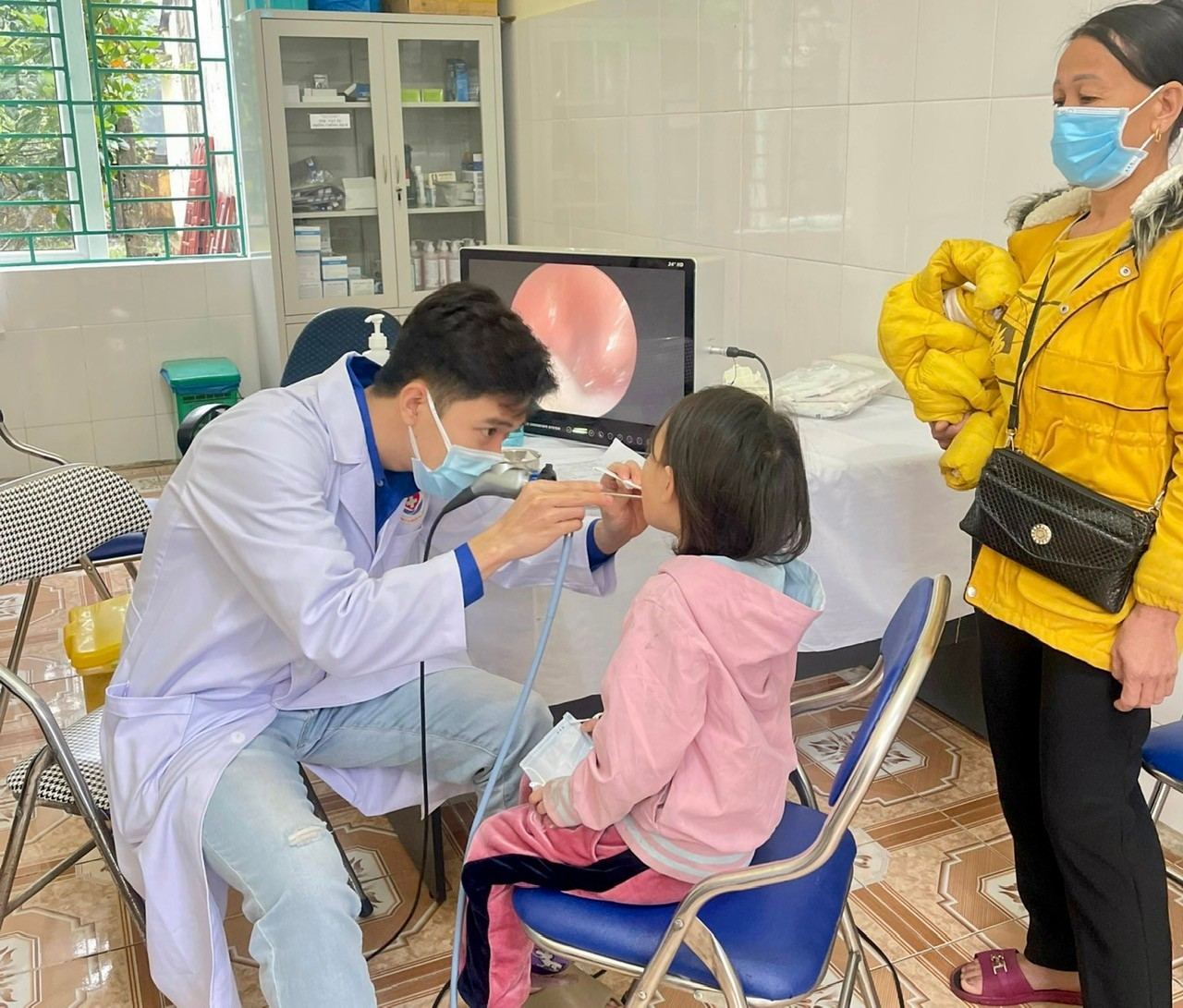 Đoàn y – bác sĩ Trung tâm y tế thành phố Móng Cái khám chữa bệnh tại xã Hải Sơn.