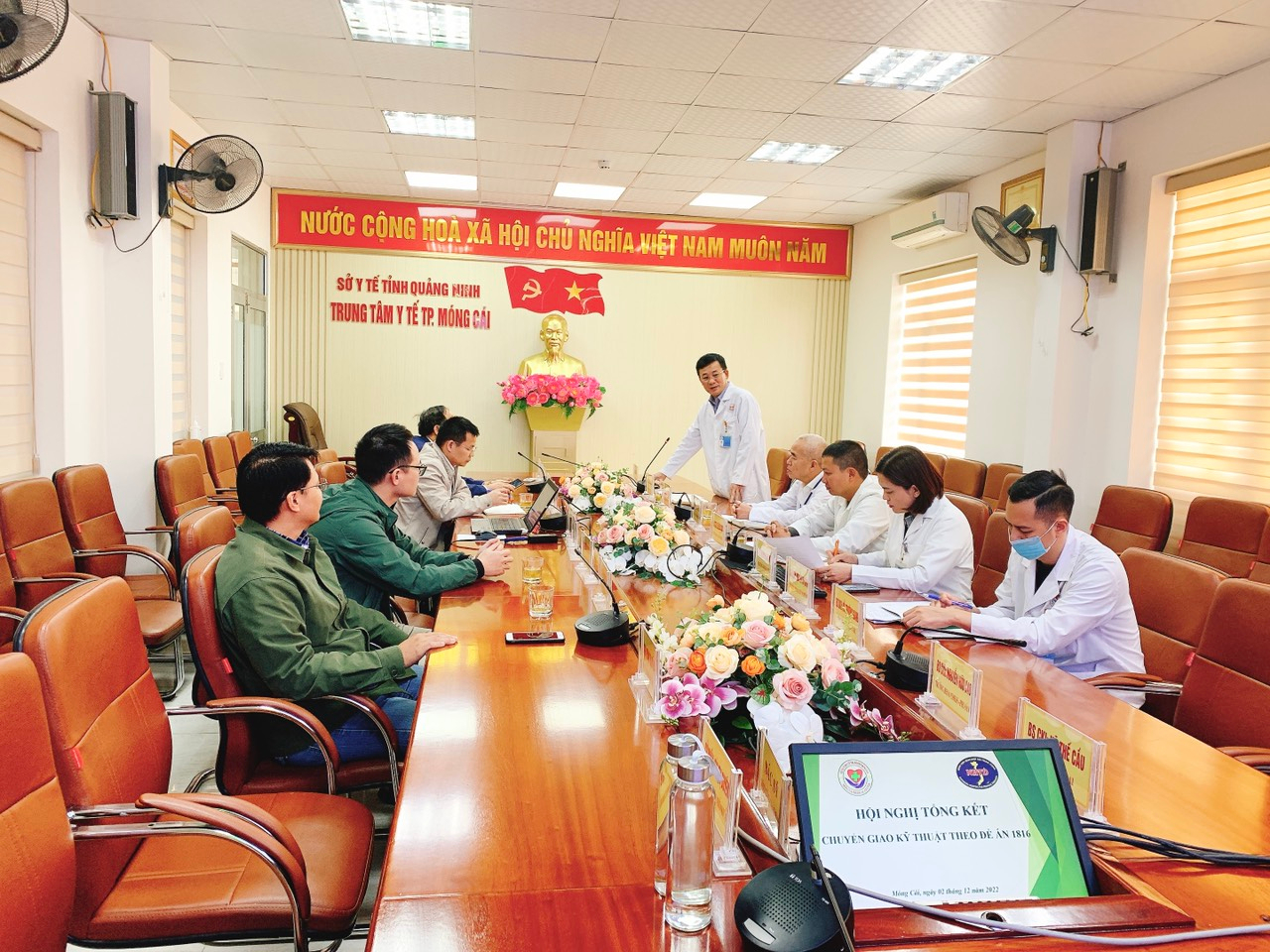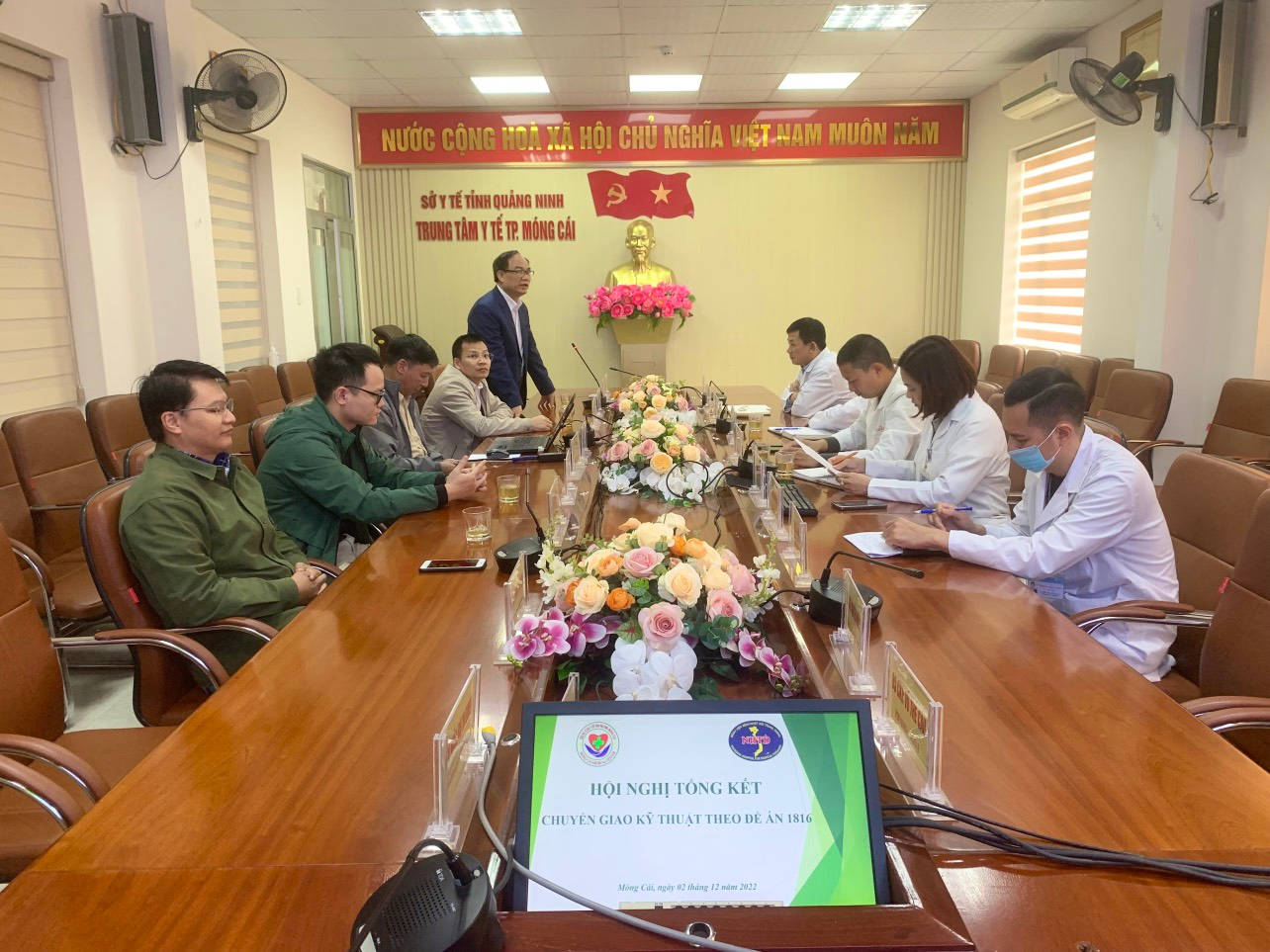 Đoàn công tác Bệnh viện Bệnh nhiệt đới Trung ương phát biểu trao đổi tại hội nghị tổng kết chuyển giao kỹ thuật cho Trung tâm y tế TP Móng Cái