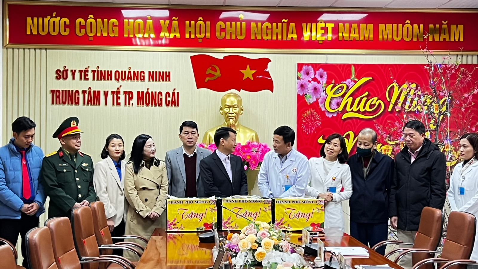 Nhân dịp Tết Nguyên đán Quý Mão 2023, sáng ngày 16/1, Đoàn lãnh đạo Thành ủy, HĐND, UBND, Ủy ban MTTQ thành phố Móng Cái do đồng chí Hồ Quang Huy, Phó Bí thư Thành ủy, Chủ tịch UBND thành phố làm trưởng đoàn đã đến chúc Tết, thăm hỏi, động viên và tặng quà cho cán bộ, nhân viên y tế tại Trung tâm Y tế thành phố Móng Cái.