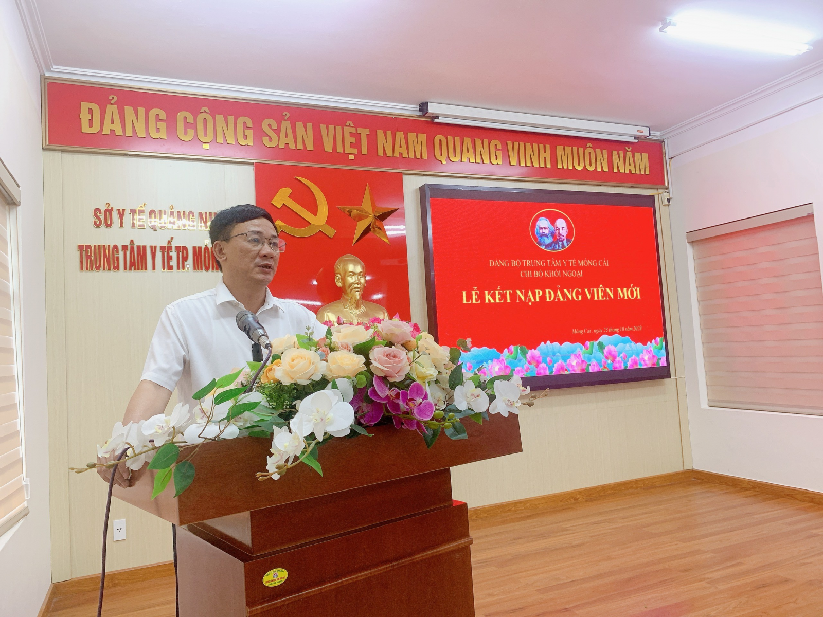 Ngày 23/10, tại 5 Chi bộ trực thuộc Đảng bộ Trung tâm Y tế thành phố Móng Cái đã long trọng tổ chức Lễ kết nạp đảng viên, với sự tham gia của toàn thể đảng viên trong chi bộ. Đồng chí Đoàn Ngọc Thủy, Bí thư Đảng ủy, Giám đốc Trung tâm dự và phát biểu tại Lễ kết nạp.
