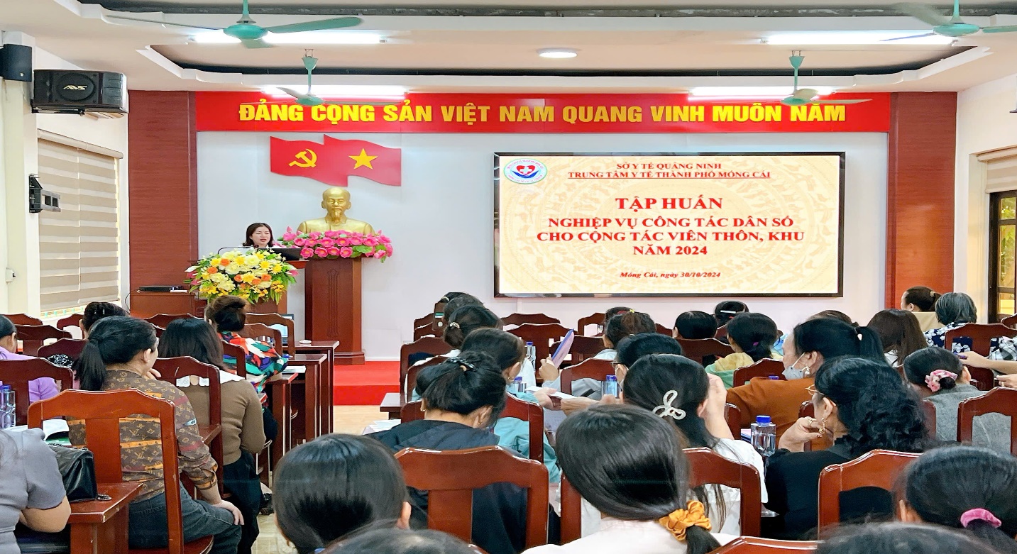 Năm 2024, Trung tâm Y tế TP Móng Cái đã mở được 03 lớp tập huấn chuyên môn nghiệp vụ về dân số, nhằm thông tin những chủ chương chính sách của Đảng và Nhà nước về công tác dân số trong tình hình mới bên cạnh các nội dung như kiến thức về công tác DS-KHHGĐ, chăm sóc SKSS, phương pháp truyền thông, vận động người dân thực hiện chính sách dân số ở cơ sở; phương pháp thu thập thông tin và ghi chép sổ hộ gia đình...