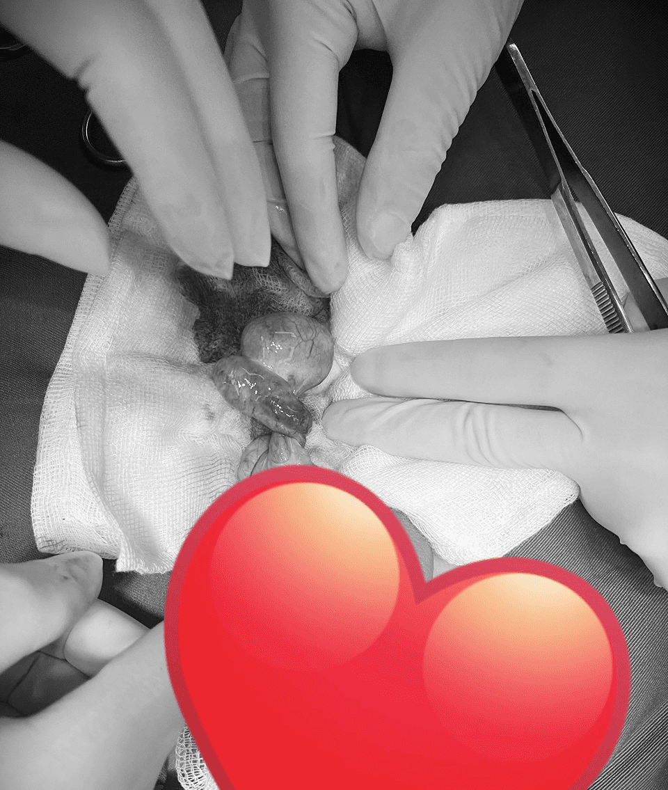 Hình ảnh tổn thương xoắn tinh hoàn của bệnh nhân nam Đ.D.T. 13 tuổi được phẫu thuật tháo xoắn tinh hoàn tại Trung tâm y tế thành phố Móng Cái