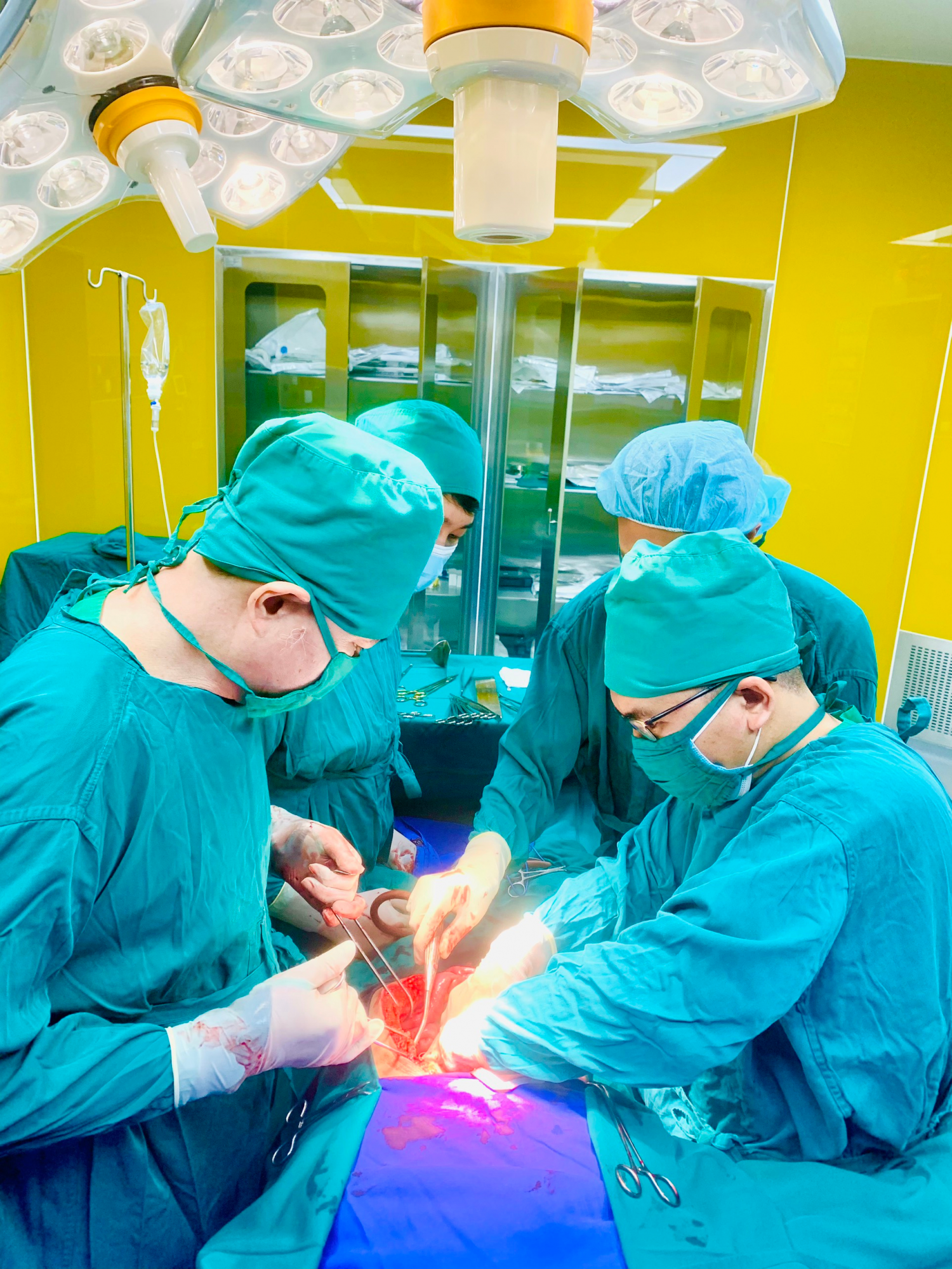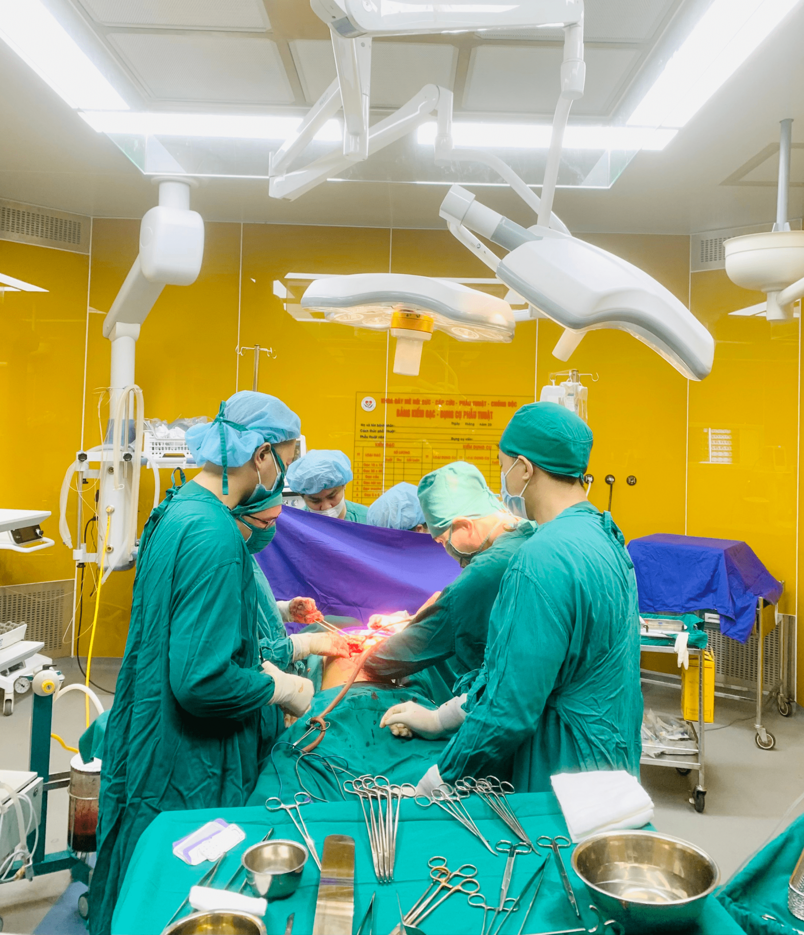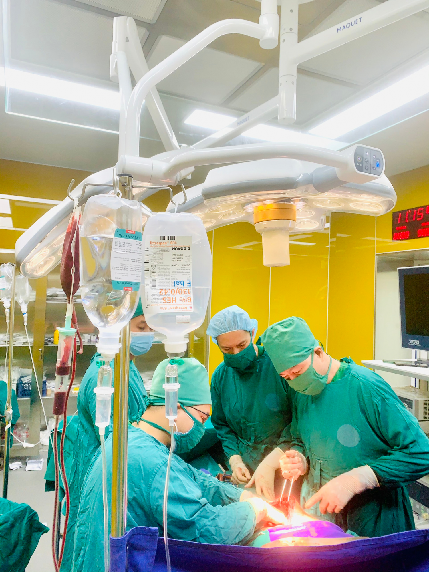 Kíp mổ do Bs.CKI Vũ Thế Cầu, phó trưởng khoa ngoại, Bs.CKI. Khổng Minh Toàn cùng các kỹ thuật viên dưới sự hỗ trợ, chỉ đạo chuyên môn của TTND.Bs CKII Nguyễn Quốc Hùng tiến hành mở ổ bụng, xử trí tổn thương, khâu vết thương cầm máu nhu mô gan, dẫn lưu khoang màng phổi. Sau 4 giờ phẫu thuật căng cẳng với 500ml máu được truyền bổ sung, ca mổ đã diễn ra thành công. Bệnh nhân được chuyển khoa Hồi sức cấp cứu tiếp tục điều trị. Các tổn thương ở cánh tay và bên ngoài khác đã được xử lý.