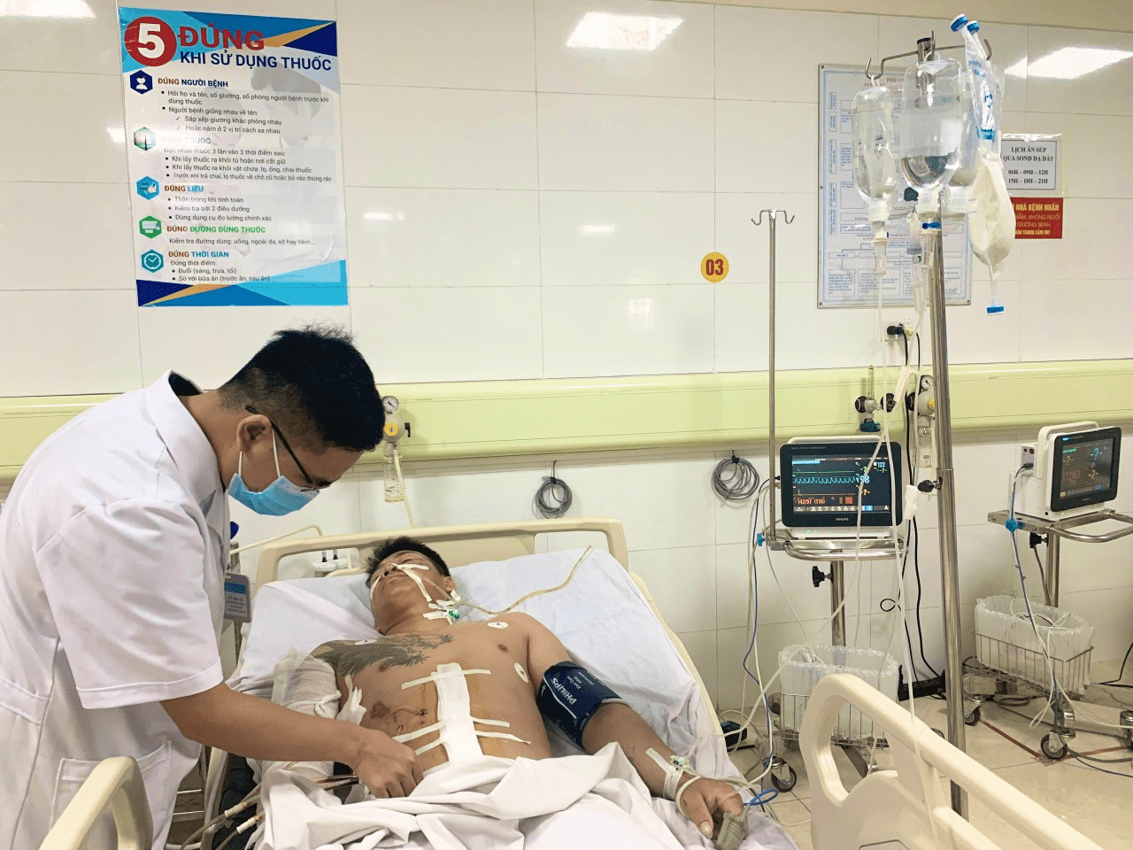 Sau tai nạn rơi từ độ cao khoảng 7m xuống nền cứng, bệnh nhân được đưa vào viện trong tình trạng sốc, đa chấn thương, khó thở nhiều, đau tức ngực phải, bụng chướng. Kết quả khám lâm sàng và cận lâm sàng, bệnh nhân được chẩn đoán chấn thương ngực kín, chấn thương gan, gãy đầu dưới xương cánh tay phải. Các bác sĩ Trung tâm y tế Móng Cái kịp thời hồi sức, phẫu thuật cầm máu nhu mô gan, dẫn lưu mạng phổi, cứu người bệnh qua cơn nguy kịch.
