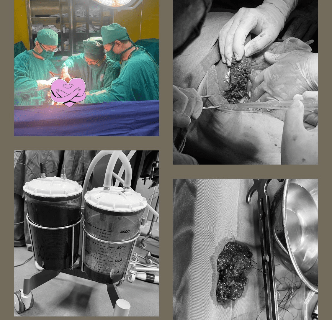 Ekip phẫu thuật do Bs.CKI Vũ Thế Cầu, trưởng khoa Ngoại, Bs. CKI Phạm Thái Bình, phó trưởng Khoa Hồi sức cấp cứu cùng bác sĩ, kỹ thuật viên tiến hành mở ổ bụng kiểm tra, các bác sĩ phát hiện có khoảng 1500ml máu loãng không đông và khoảng 500g máu cục trong ổ bụng. Gan phải vỡ dập nát hạ phân thùy 6,7, có mạch máu đang chảy.