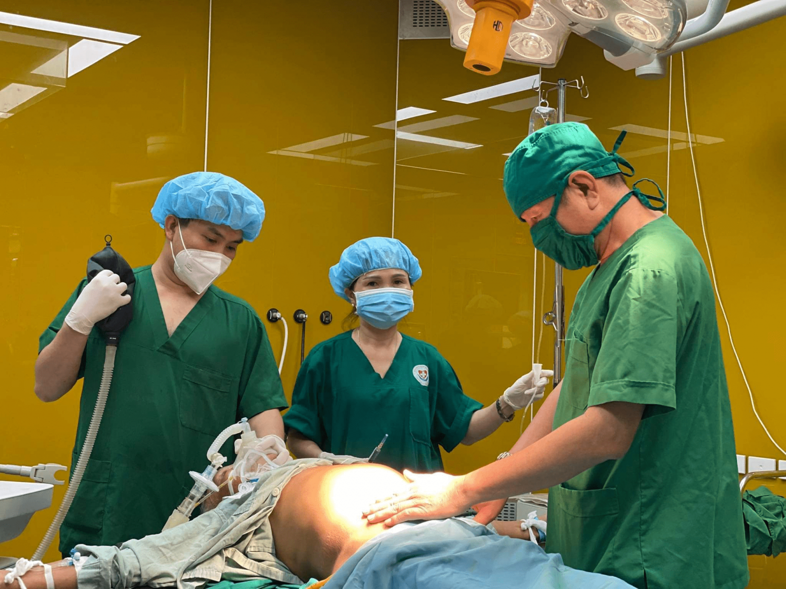 Phẫu thuật cắt khối u trực tràng, u gan, ruột non cho bệnh nhân 76 tuổi tại Trung tâm Y tế thành phố Móng Cái.