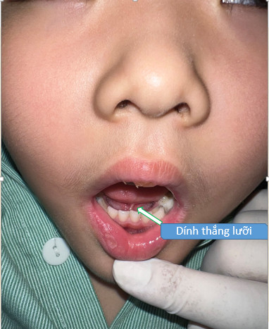Hình ảnh dính thắng lưỡi độ 4 của bệnh nhân V.A (5 tuổi)
